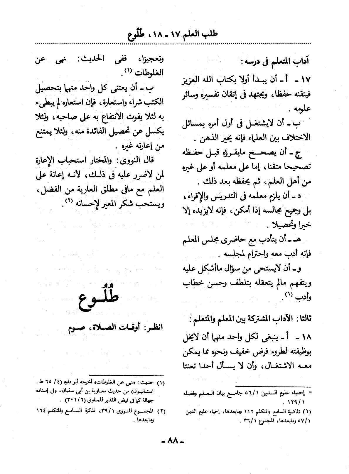 (1) تذكرة السامع والمتكلم 112 وما بعدها، إحياء علوم الدين 1 / 57 وما بعدها، المجموع 1 / 36.