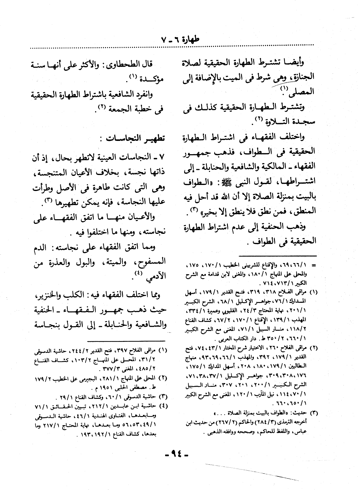 (2) مراقي الفلاح 260، الاختيار شرح المختار 1 / 43، 74، فتح القدير 1 / 179، 392، والمهذب 1 / 66، 69، 93 منهاج الطالبين 1 / 179، 180، 208، أسهل المدارك 1 / 175، 176، 308، 309، جواهر الإكليل 1 / 37، 38، 71، الشرح الكبير 1 / 200، 201، 307، منار السبيل 1 / 70، 114، نيل المآرب 1 / 120، المغني مع الشرح الكبير 1 / 650، 660.
