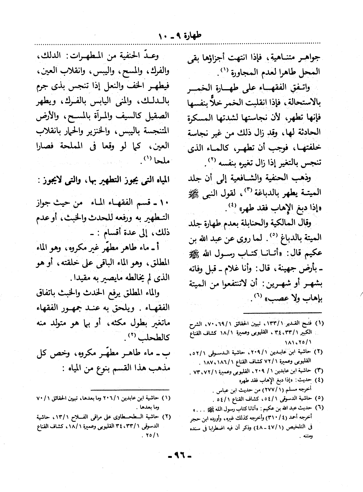 (1) حاشية ابن عابدين 1 / 206 وما بعدها، تبيين الحقائق 1 / 70 وما بعدها.