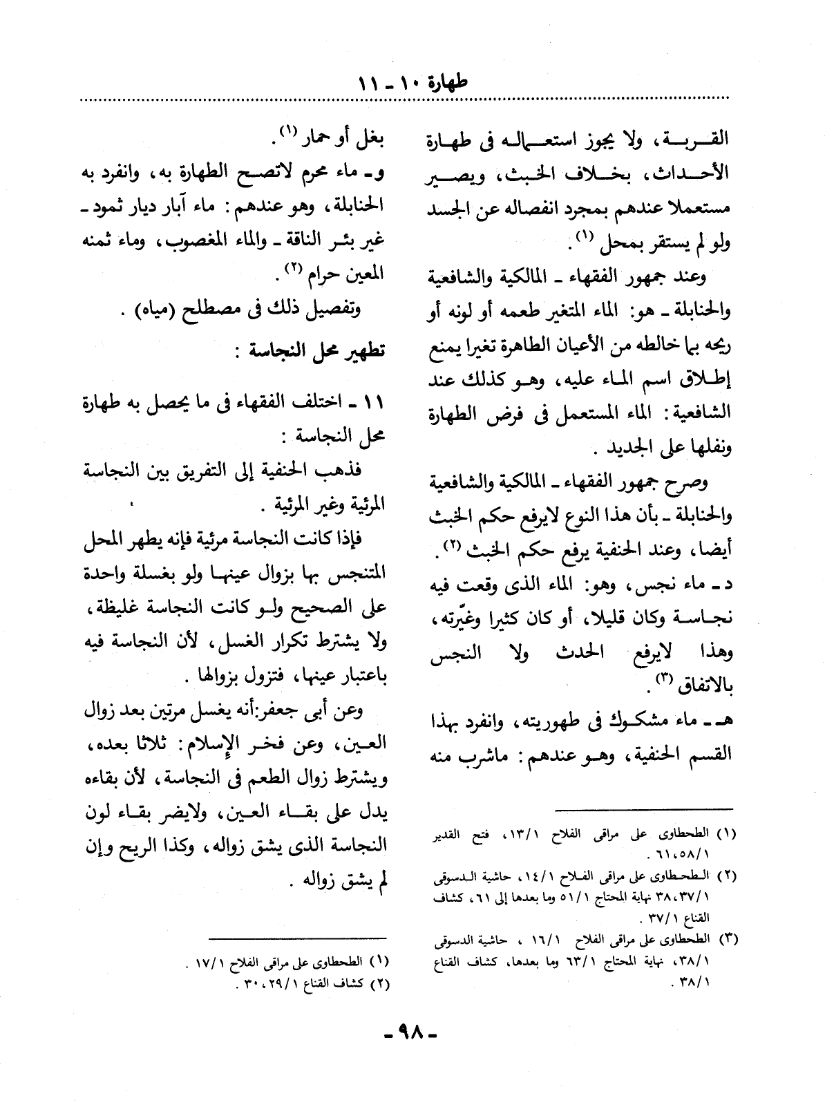 (3) الطحطاوي على مراقي الفلاح 1 / 16، حاشية الدسوقي 1 / 38، نهاية المحتاج 1 / 63 وما بعدها، كشاف القناع 1 / 38.