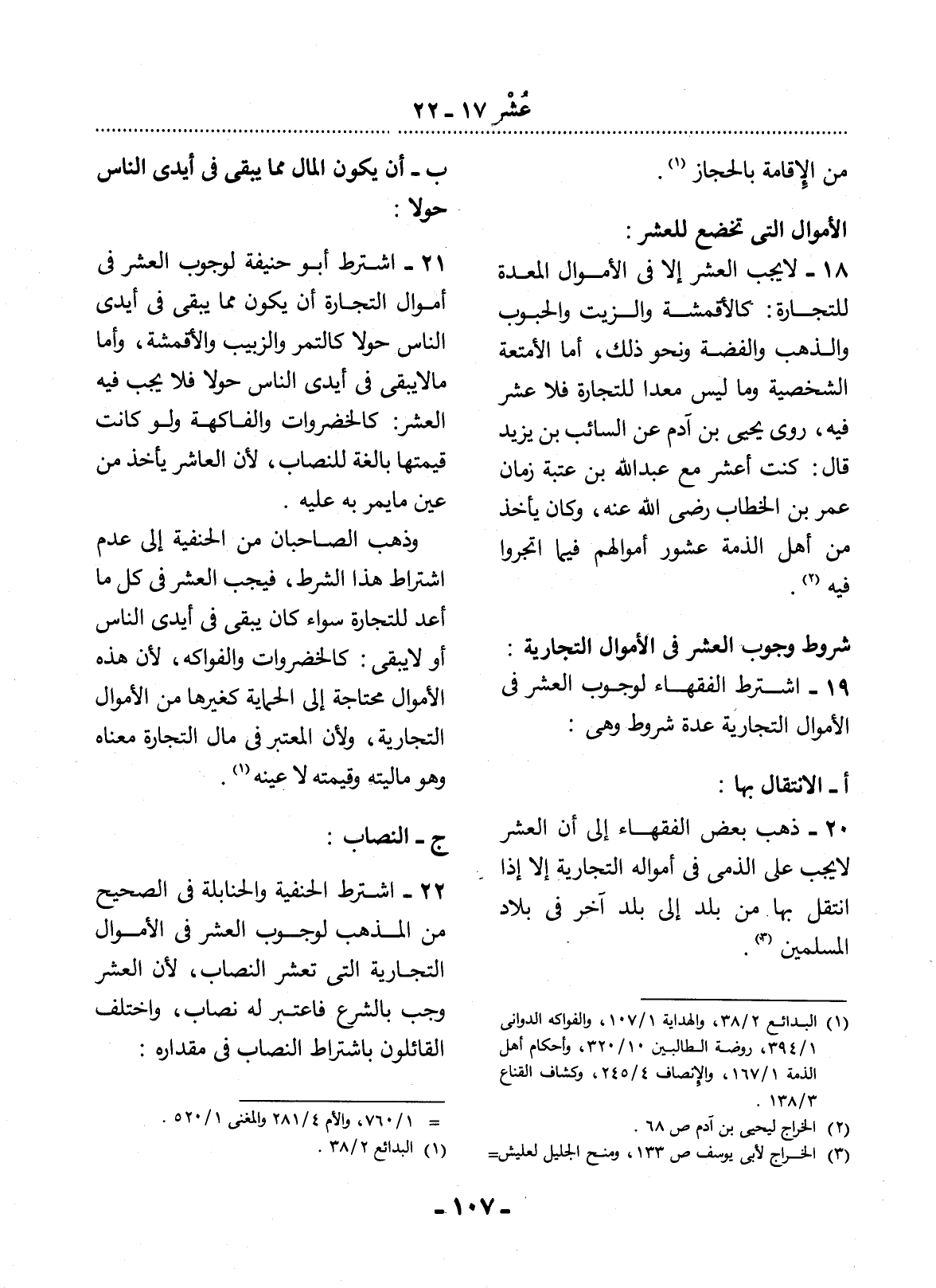 20 - ذَهَبَ بَعْضُ الْفُقَهَاءِ إِلَى أَنَّ الْعُشْرَ لاَ يَجِبُ عَلَى الذِّمِّيِّ فِي أَمْوَالِهِ التِّجَارِيَّةِ إِلاَّ إِذَا انْتَقَل بِهَا مِنْ بَلَدٍ إِلَى بَلَدٍ آخَرَ فِي بِلاَدِ الْمُسْلِمِينَ (3) .