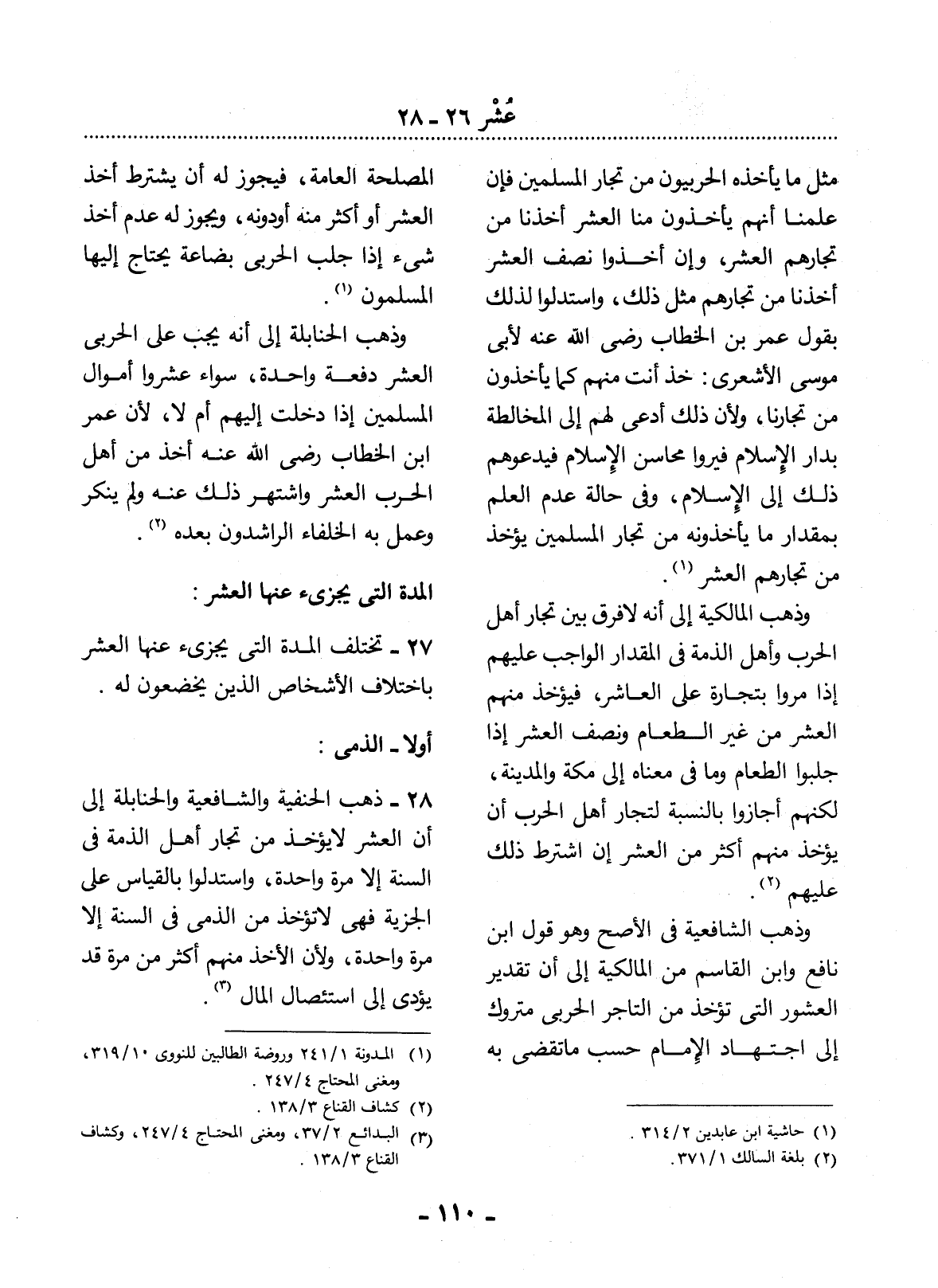27 - تَخْتَلِفُ الْمُدَّةُ الَّتِي يُجْزِئُ عَنْهَا الْعُشْرُ بِاخْتِلاَفِ الأَْشْخَاصِ الَّذِينَ يَخْضَعُونَ لَهُ.