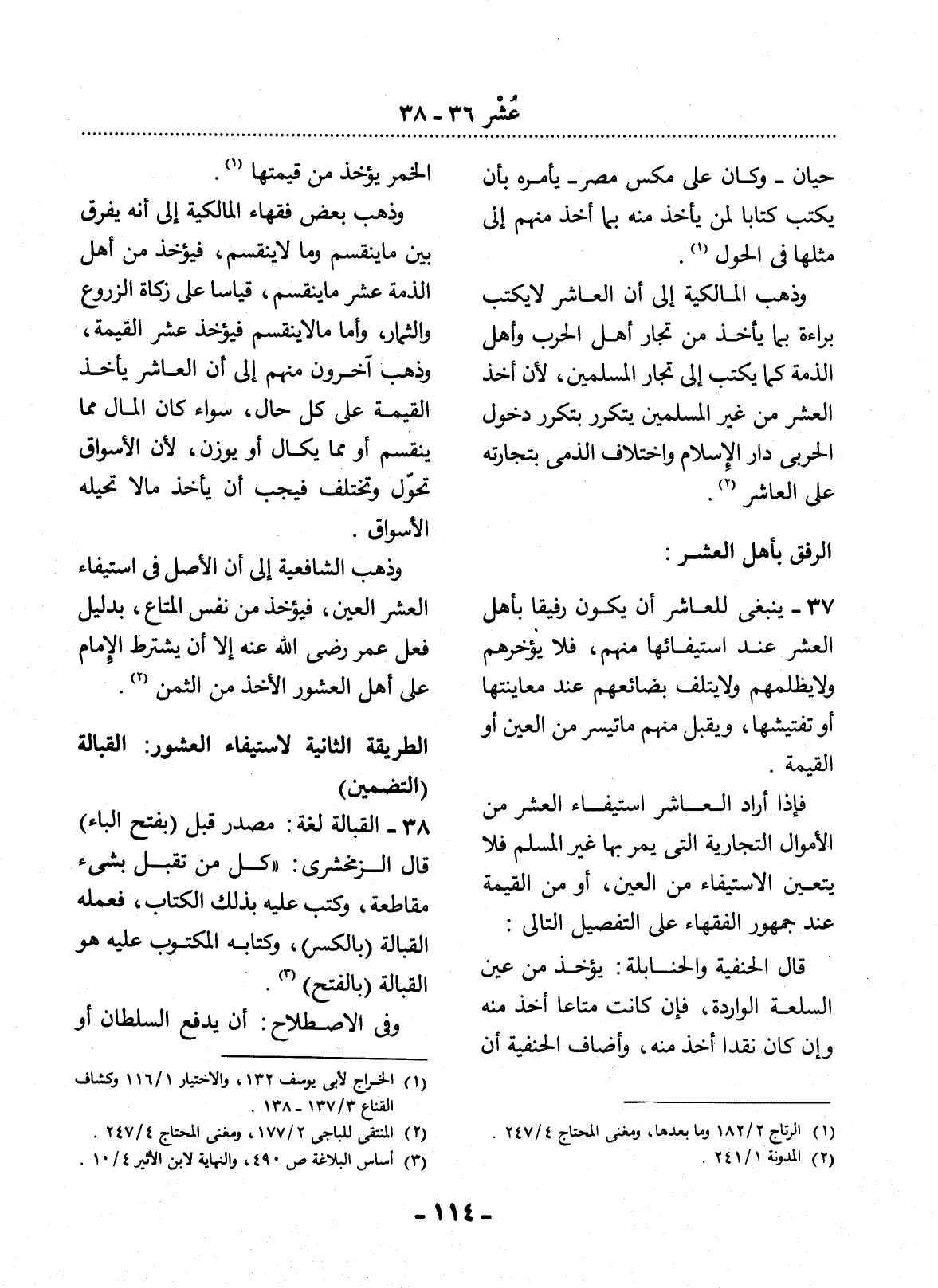 (1) الخراج لأبي يوسف 132، والاختيار 1 / 116، وكشاف القناع 3 / 137 - 138.