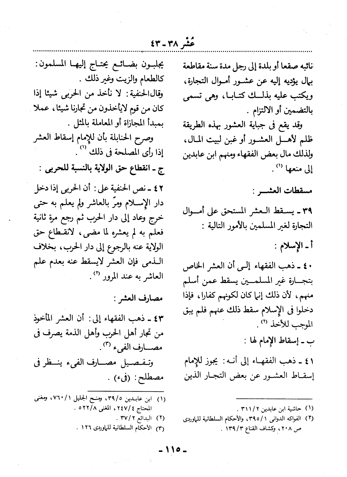 39 - يَسْقُطُ الْعُشْرُ الْمُسْتَحَقُّ عَلَى أَمْوَال التِّجَارَةِ لِغَيْرِ الْمُسْلِمِينَ بِالأُْمُورِ التَّالِيَةِ: