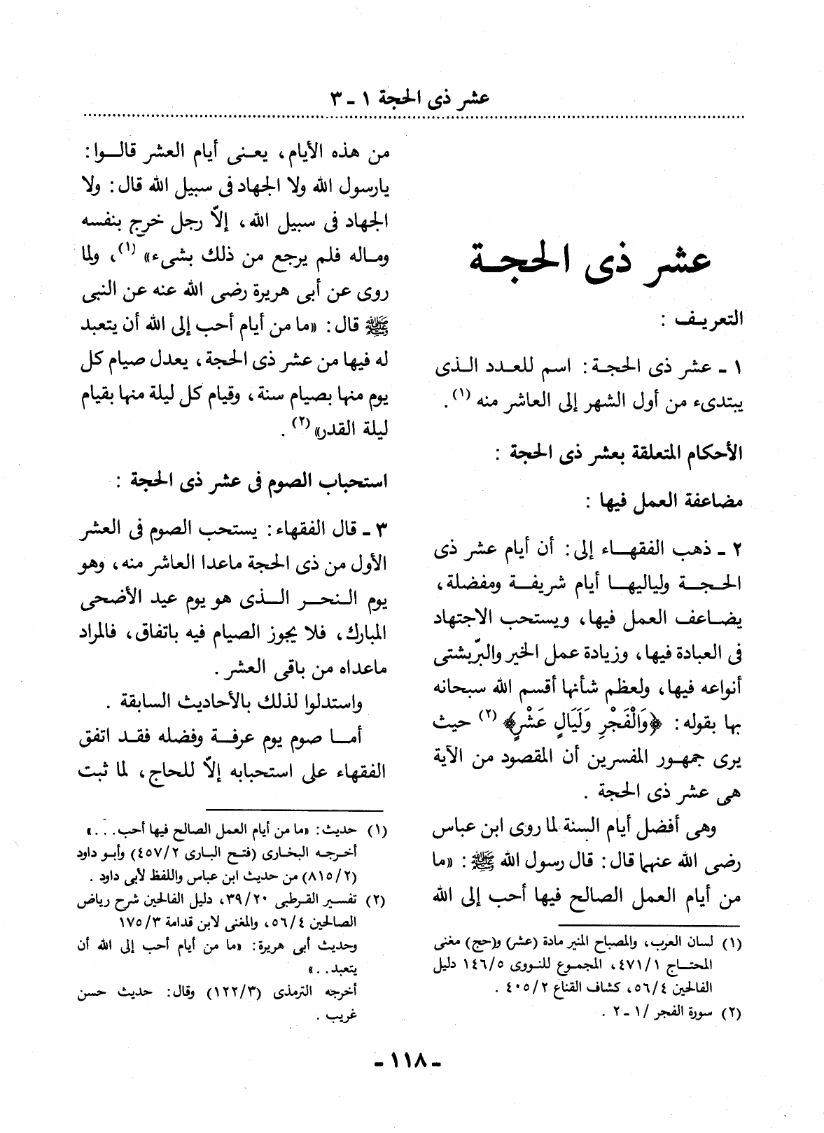 (2) تفسير القرطبي 20 / 39، دليل الفالحين شرح رياض الصالحين 4 / 56، والمغني لابن قدامة 3 / 175. وحديث أبي هريرة: " ما من أيام أحب إلى الله أن يتعبد. . . ". أخرجه الترمذي (3 / 122) وقال: حديث حسن غريب.