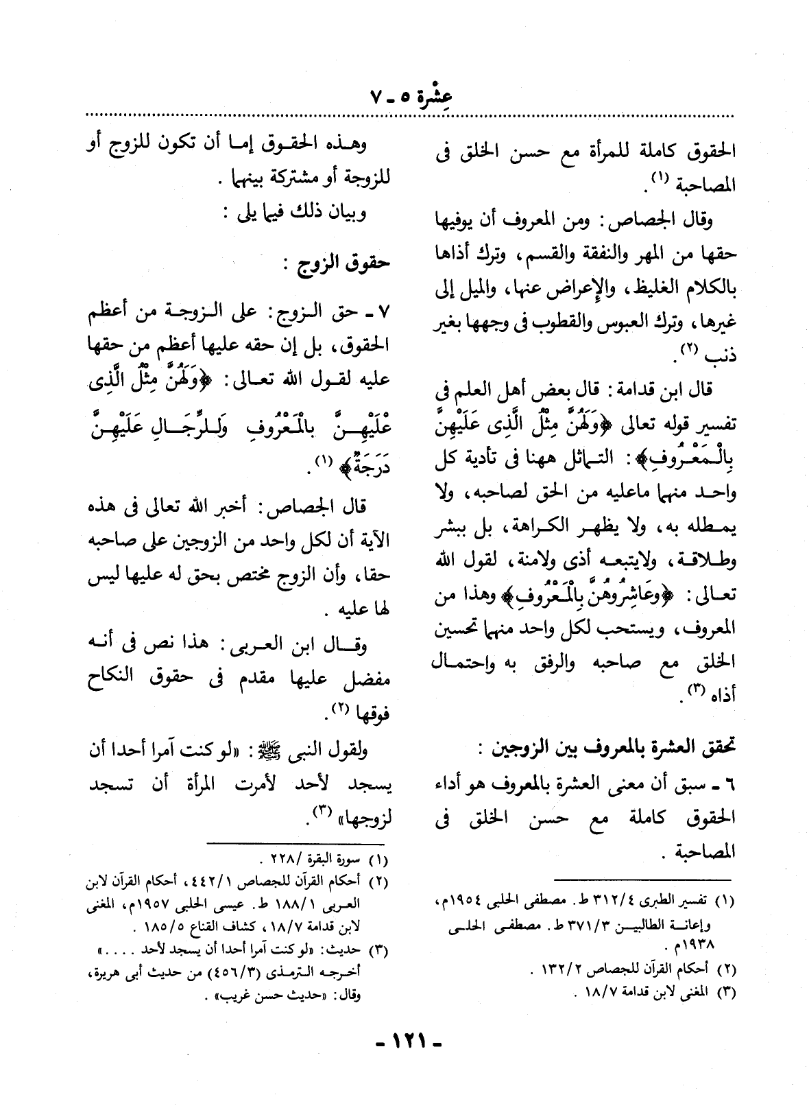 6 - سَبَقَ أَنَّ مَعْنَى الْعِشْرَةِ بِالْمَعْرُوفِ هُوَ أَدَاءُ الْحُقُوقِ كَامِلَةً مَعَ حُسْنِ الْخُلُقِ فِي الْمُصَاحَبَةِ
