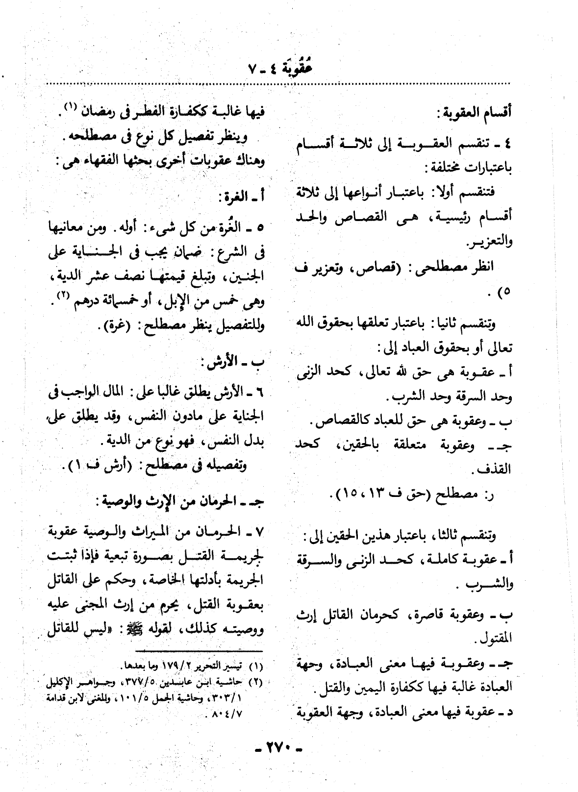 أ - عُقُوبَةٍ كَامِلَةٍ، كَحَدِّ الزِّنَى وَالسَّرِقَةِ وَالشُّرْبِ.