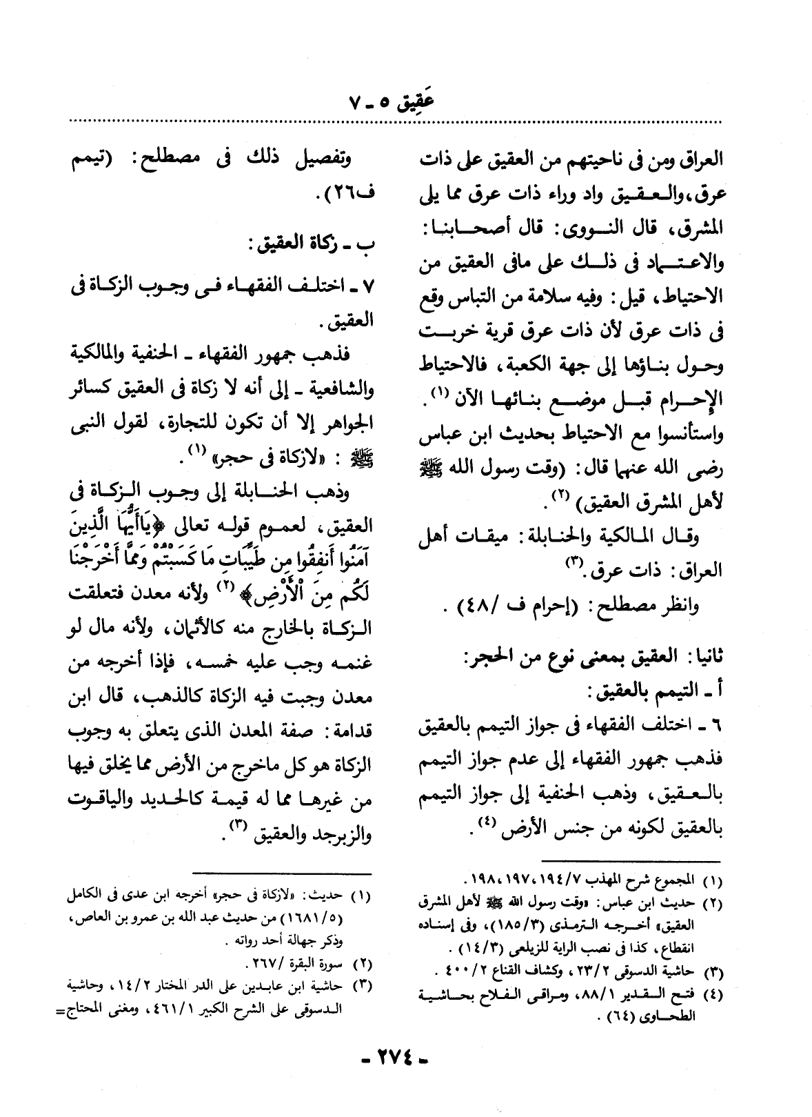 7 - اخْتَلَفَ الْفُقَهَاءُ فِي وُجُوبِ الزَّكَاةِ فِي الْعَقِيقِ.