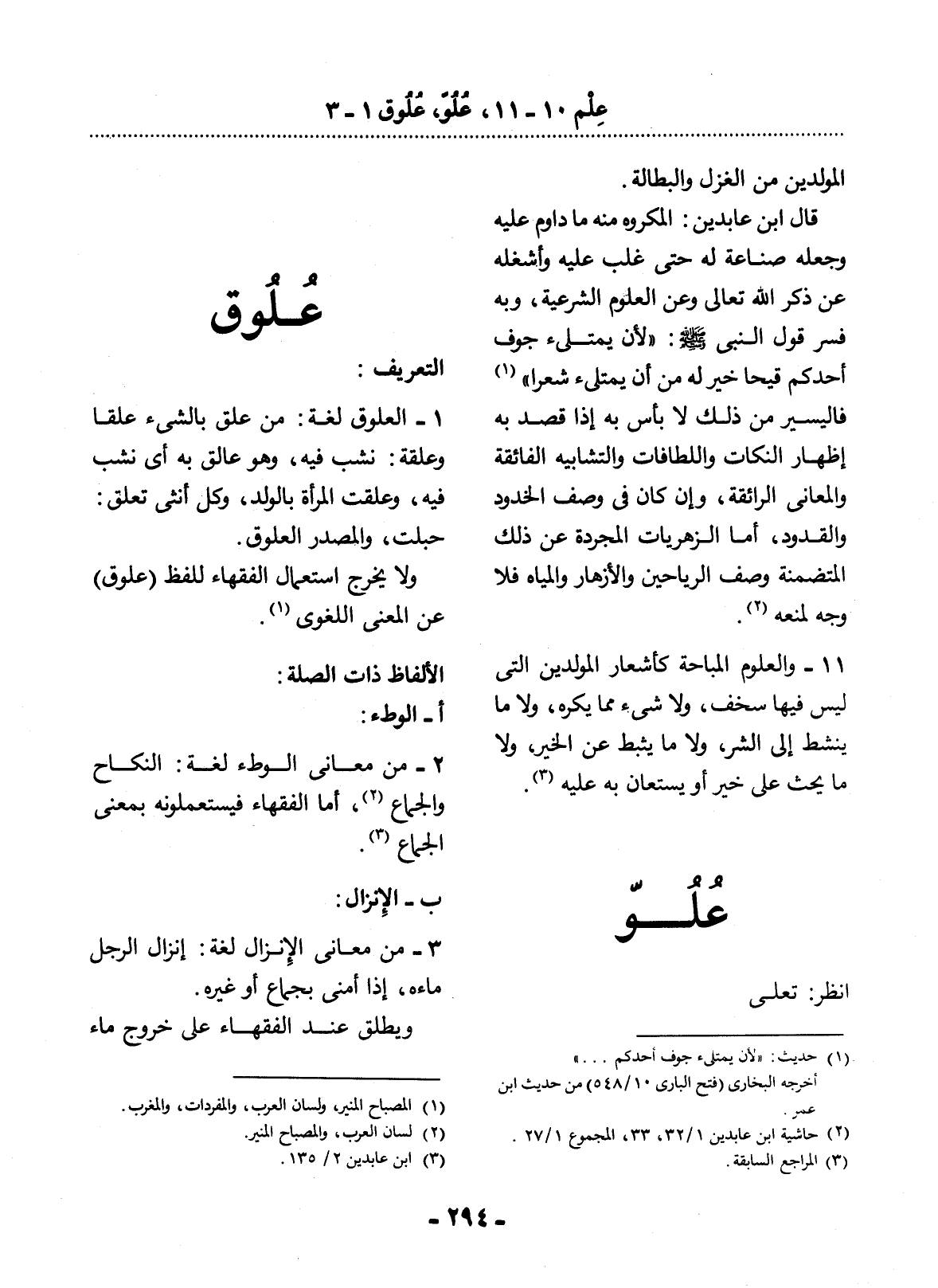 1 - الْعُلُوقُ لُغَةً: مِنْ عَلِقَ بِالشَّيْءِ عَلَقًا وَعَلَقَةً: نَشِبَ فِيهِ، وَهُوَ عَالِقٌ بِهِ أَيْ: نَشِبَ فِيهِ، وَعَلِقَتِ الْمَرْأَةُ بِالْوَلَدِ، وَكُل أُنْثَى تَعْلَقُ: حَبِلَتْ، وَالْمَصْدَرُ الْعُلُوقُ وَلاَ يَخْرُجُ اسْتِعْمَال الْفُقَهَاءِ لِلَفْظِ (عُلُوقٍ) عَنِ الْمَعْنَى اللُّغَوِيِّ (1) .
