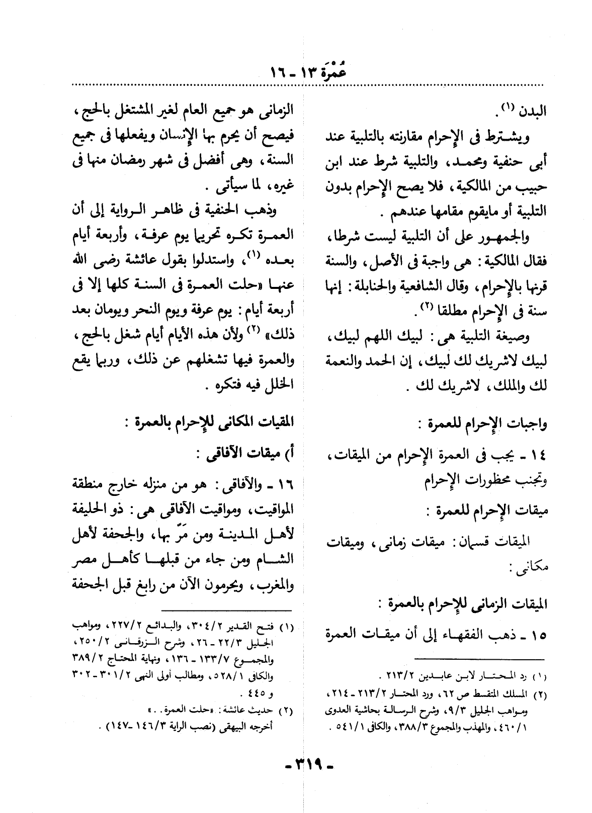 14 - يَجِبُ فِي الْعُمْرَةِ الإِْحْرَامُ مِنَ الْمِيقَاتِ، وَتَجَنُّبُ مَحْظُورَاتِ الإِْحْرَامِ