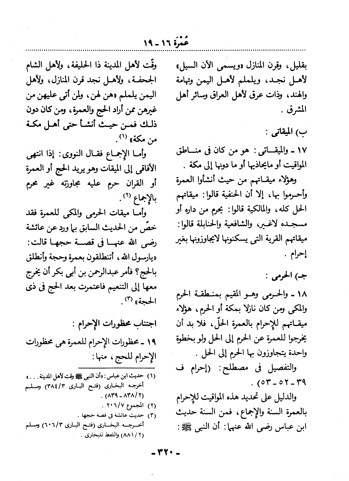 (1) حديث ابن عباس: " أن النبي صلى الله عليه وسلم وقت لأهل المدينة. . . ". أخرجه البخاري (فتح الباري 3 / 384) ومسلم (2 / 838 - 839) .