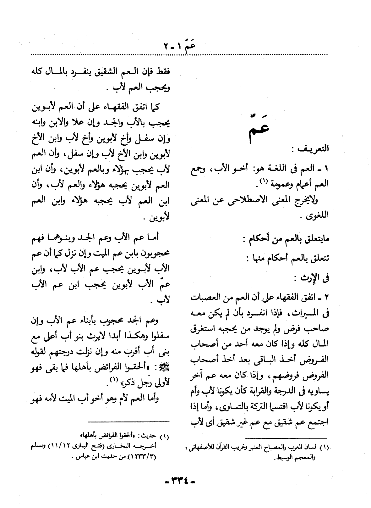 مَا يَتَعَلَّقُ بِالْعَمِّ مِنْ أَحْكَامٍ:
