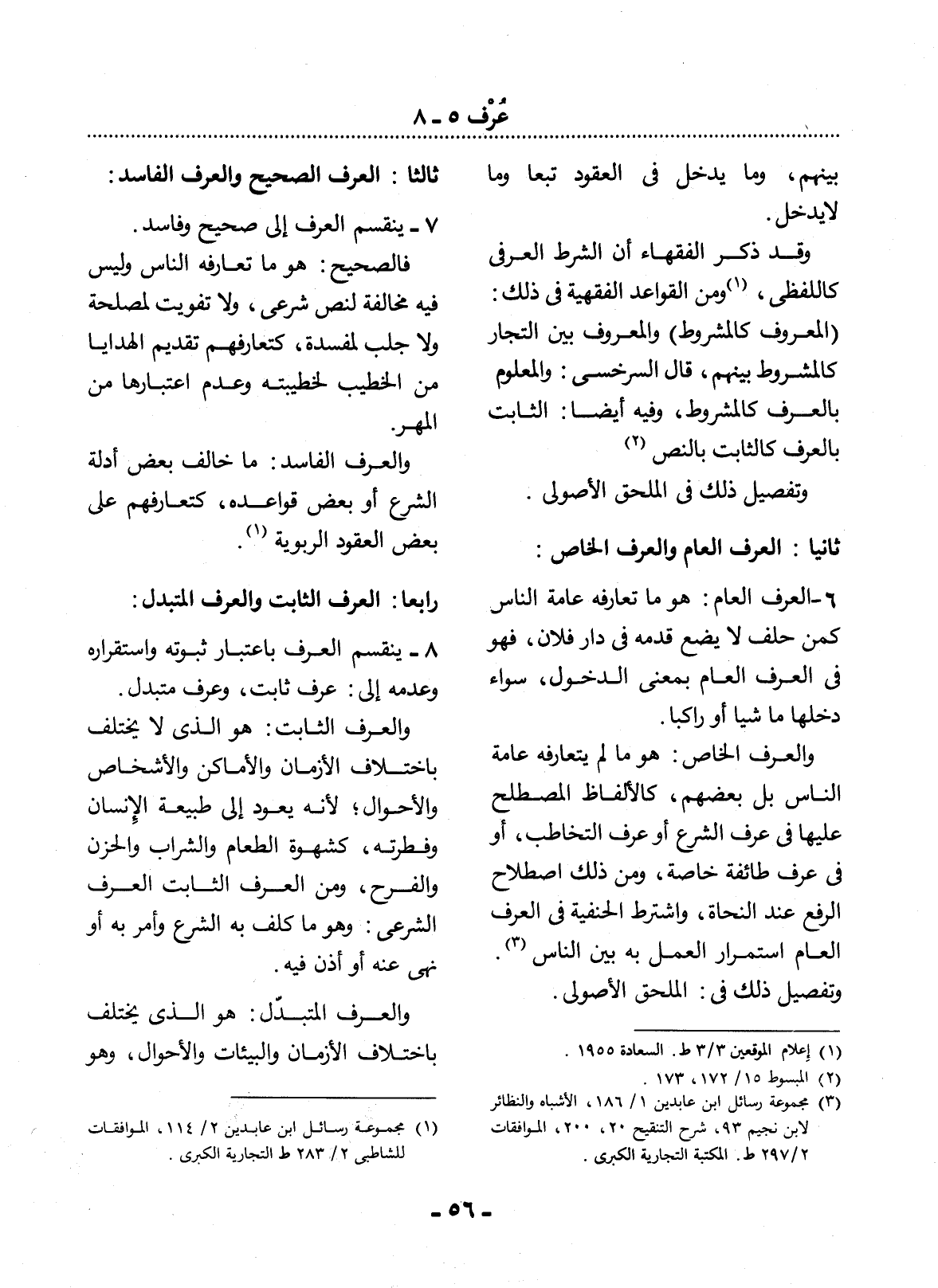 7 - يَنْقَسِمُ الْعُرْفُ إِلَى صَحِيحٍ وَفَاسِدٍ.