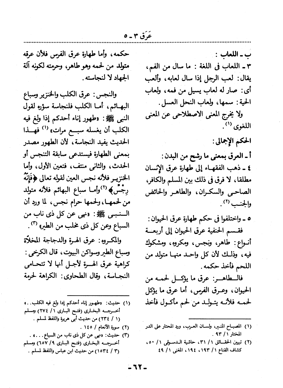(1) المصباح المنير، ولسان العرب، ورد المحتار على الدر المختار 1 / 93.