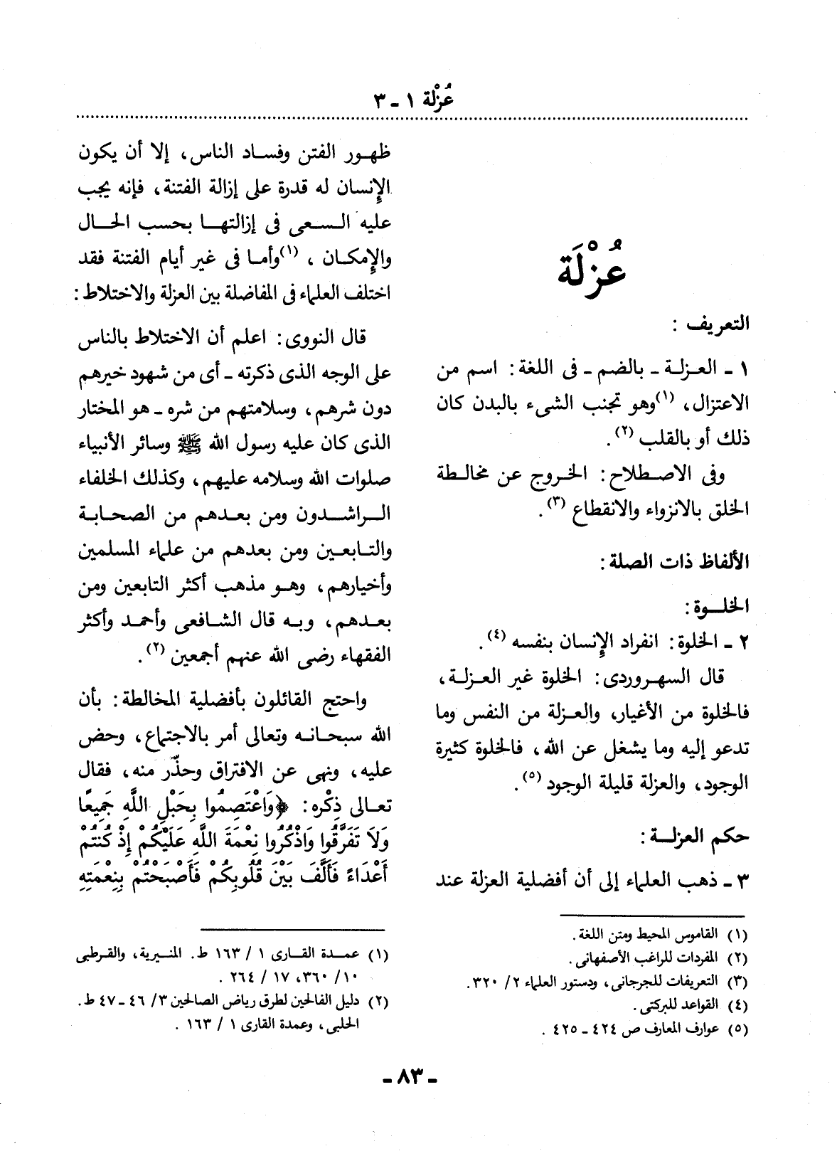 3 - ذَهَبَ الْعُلَمَاءُ إِلَى أَنَّ أَفْضَلِيَّةَ الْعُزْلَةِ عِنْدَ