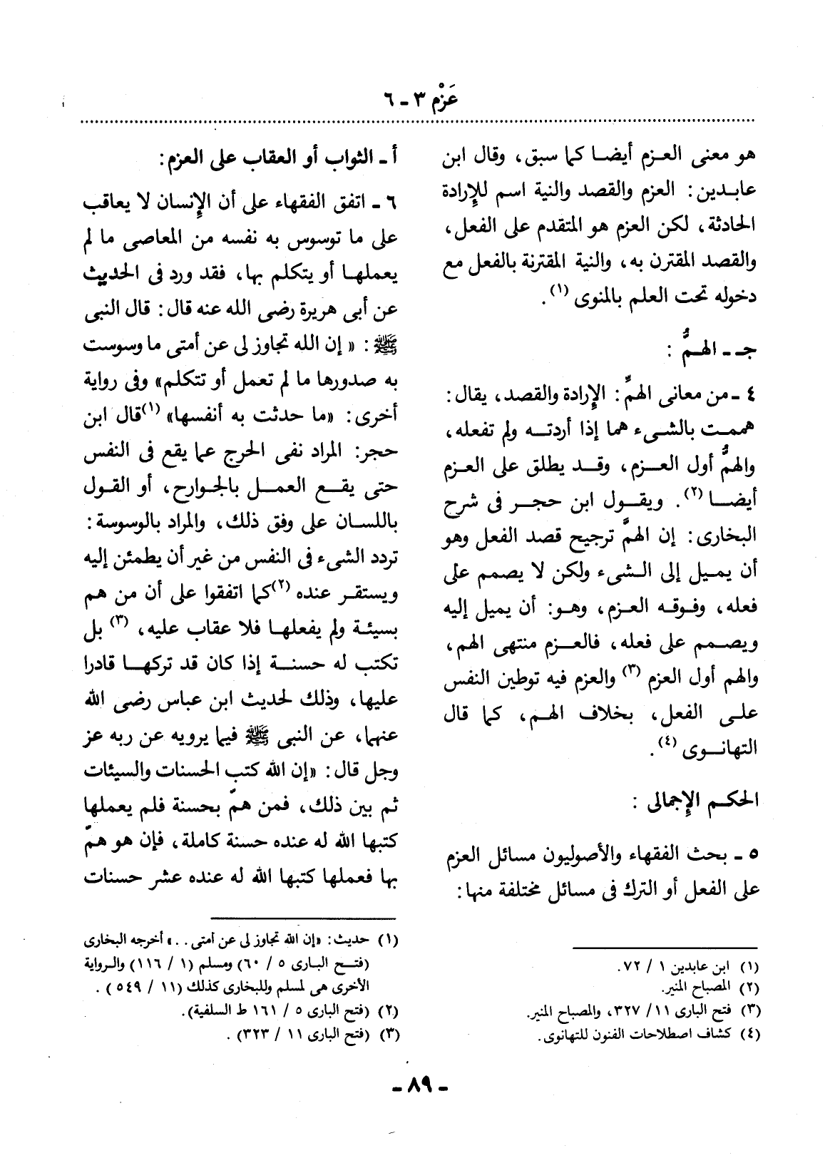 أ - الثَّوَابُ أَوِ الْعِقَابُ عَلَى الْعَزْمِ: