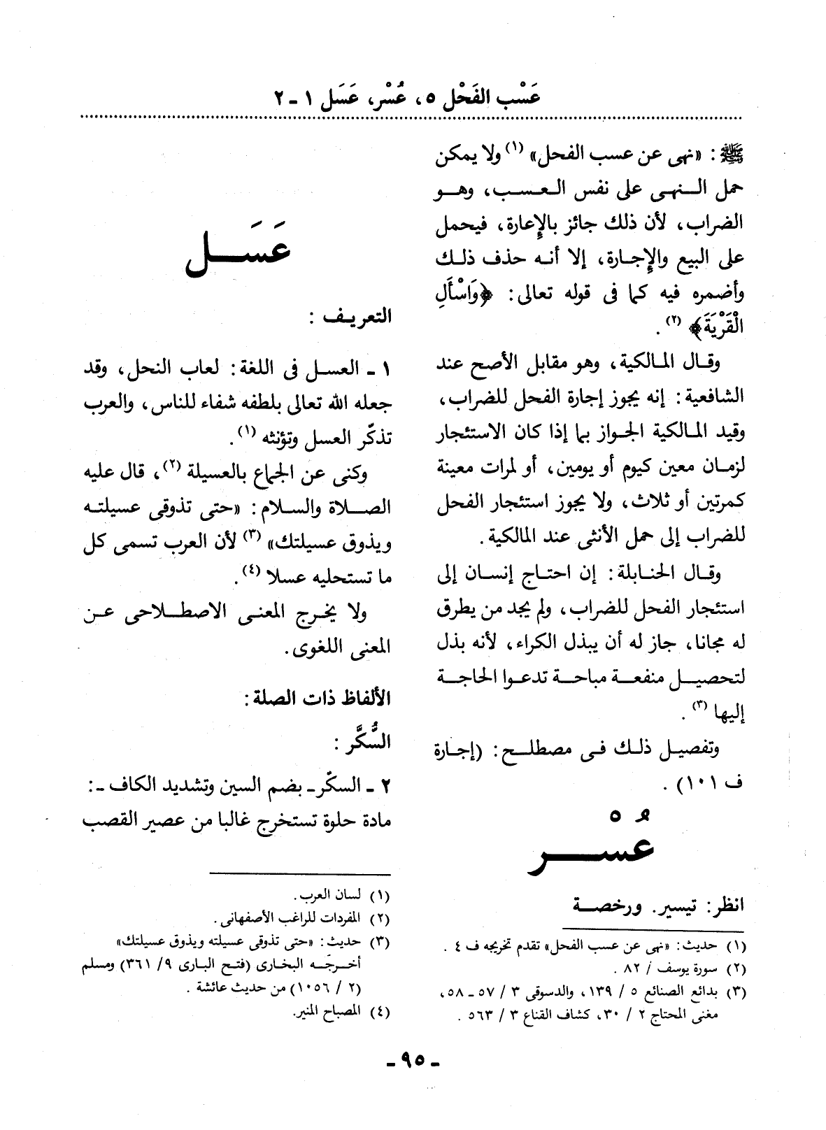 1 - الْعَسَل فِي اللُّغَةِ: لُعَابُ النَّحْل، وَقَدْ جَعَلَهُ اللَّهُ تَعَالَى بِلُطْفِهِ شِفَاءً لِلنَّاسِ، وَالْعَرَبُ تُذَكِّرُ الْعَسَل وَتُؤَنِّثُهُ (1) .