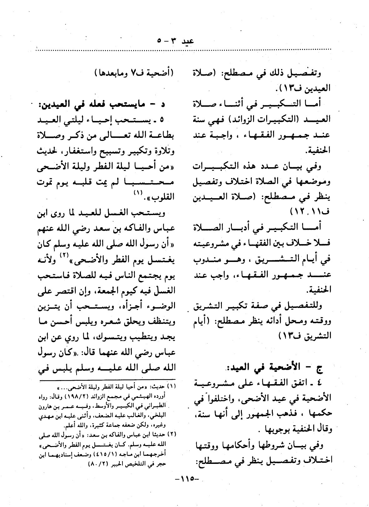 (2) حديثا ابن عباس والفاكه بن سعد:: " " أن رسول الله - صلى الله عليه وسلم. - كان يغتسل يوم الفطر والأضحى " ". أخرجهما ابن ماجهة (1 / 415) وضعف إسناديهما ابن حجر في التلخيص الحبير (2 / 80) .