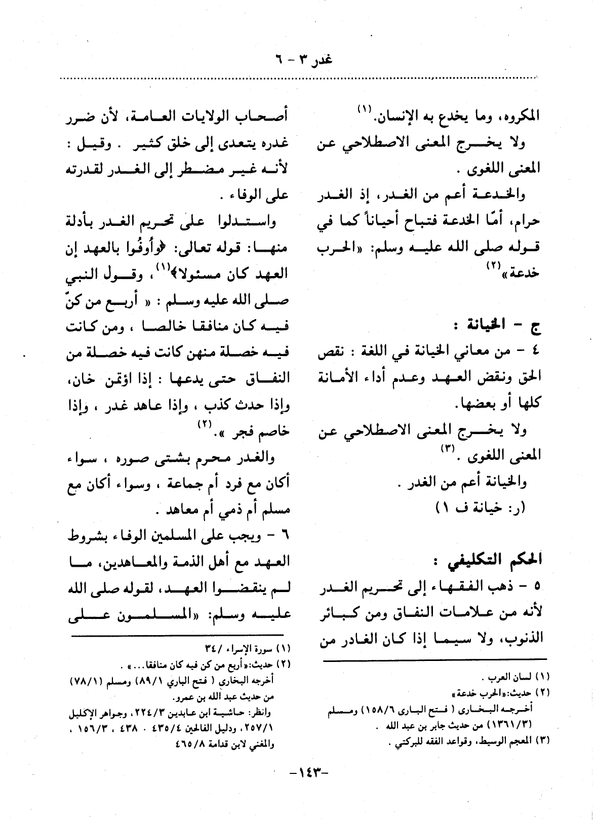 (2) حديث: " أربع من كن فيه كان منافقًا. . . ". أخرجه البخاري (فتح الباري 1 / 89) ومسلم (1 / 78) من حديث عبد الله بن عمرو. وانظر: حاشية ابن عابدين 3 / 224، وجواهر الإكليل 1 / 257، ودليل الفالحين 4 / 435، 438، 3 / 156، والمغني لابن قدامة 8 / 465.