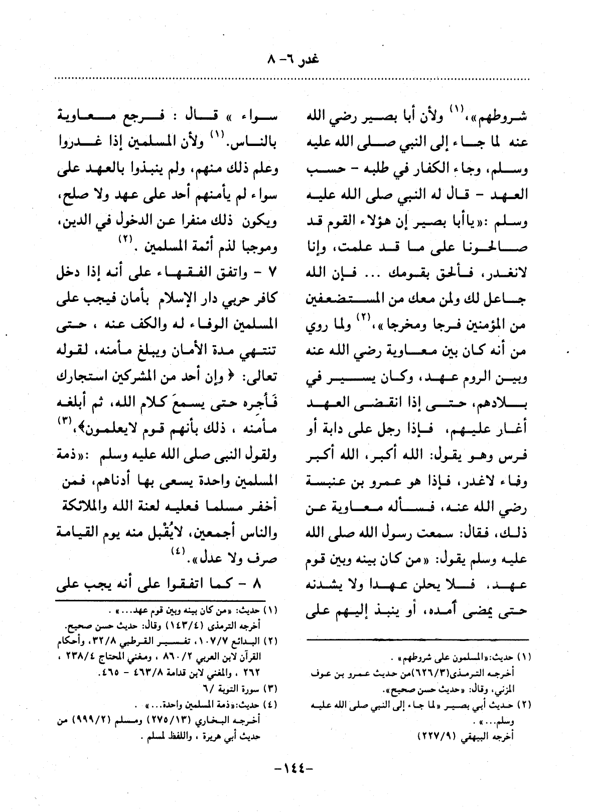 (1) حديث: " من كان بينه وبين قوم عهد. . . ". أخرجه الترمذي (4 / 143) وقال: حديث حسن صحيح.