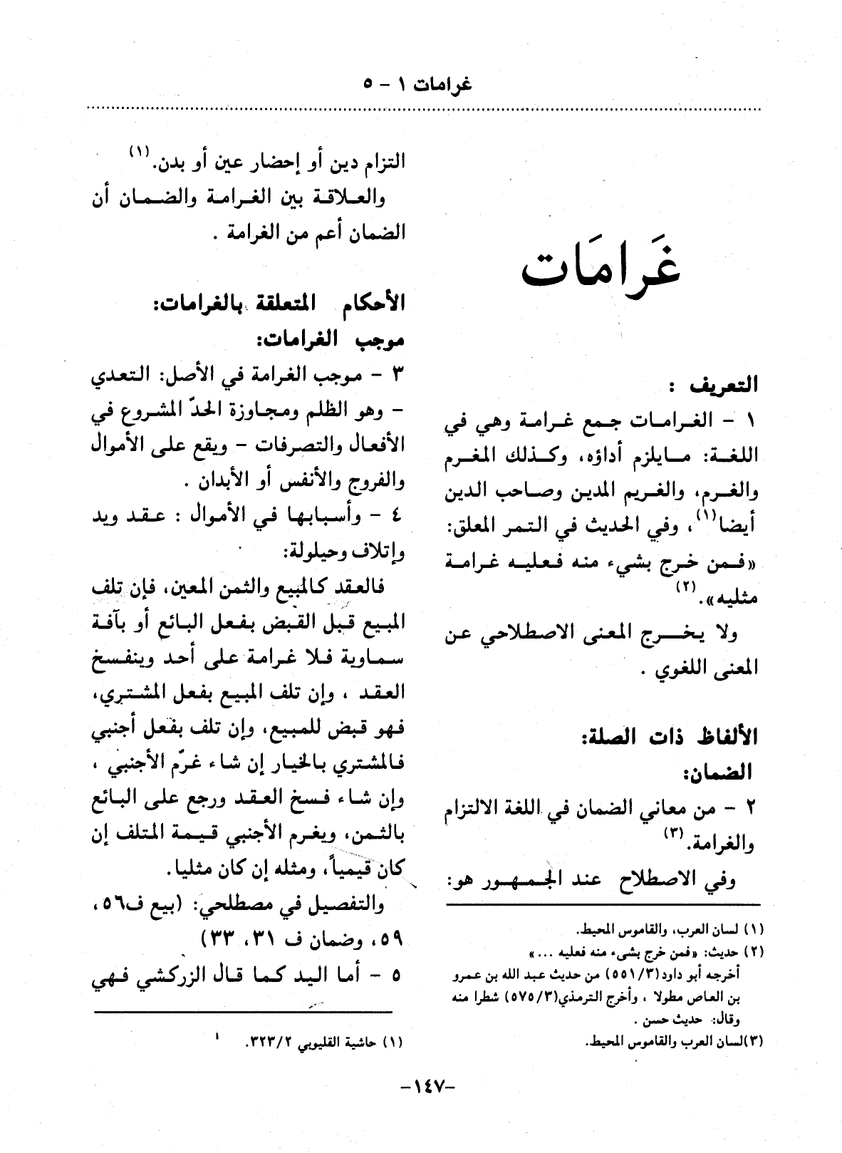 1 - الْغَرَامَاتُ جَمْعُ غَرَامَةٍ وَهِيَ فِي اللُّغَةِ: مَا يَلْزَمُ أَدَاؤُهُ، وَكَذَلِكَ الْمَغْرَمُ وَالْغُرْمُ، وَالْغَرِيمُ الْمَدِينُ وَصَاحِبُ الدَّيْنِ أَيْضًا، (1) وَفِي الْحَدِيثِ فِي التَّمْرِ الْمُعَلَّقِ: فَمَنْ خَرَجَ بِشَيْءٍ مِنْهُ فَعَلَيْهِ غَرَامَةُ مِثْلَيْهِ. (2) وَلاَ يَخْرُجُ الْمَعْنَى الاِصْطِلاَحِيُّ عَنِ الْمَعْنَى اللُّغَوِيِّ.