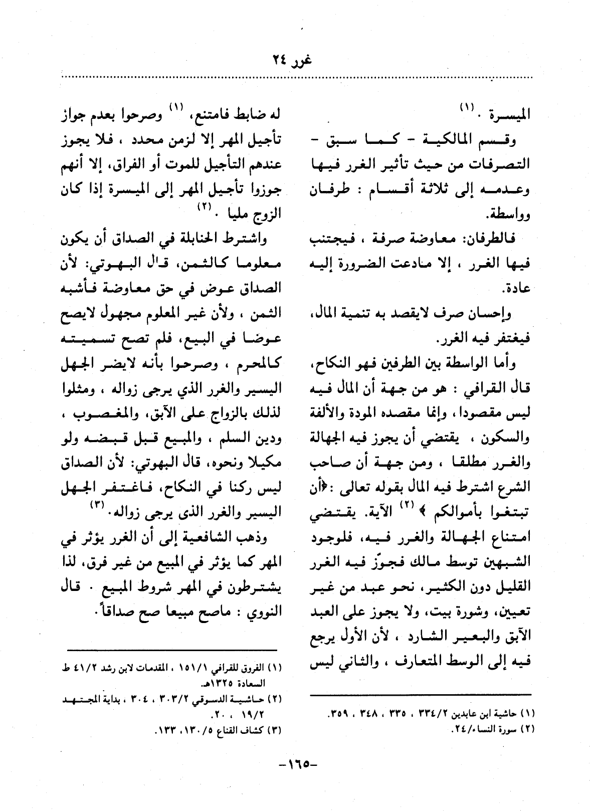(1) الفروق للقرافي 1 / 151، المقدمات لابن رشد 2 / 41 ط السعادة 1325هـ.