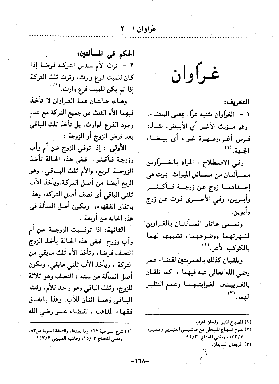 وَتُسَمَّى هَاتَانِ الْمَسْأَلَتَانِ بِالْغَرَّاوَيْنِ لِشُهْرَتِهِمَا وَوُضُوحِهِمَا، تَشْبِيهًا لَهُمَا بِالْكَوْكَبِ الأَْغَرِّ. (2)