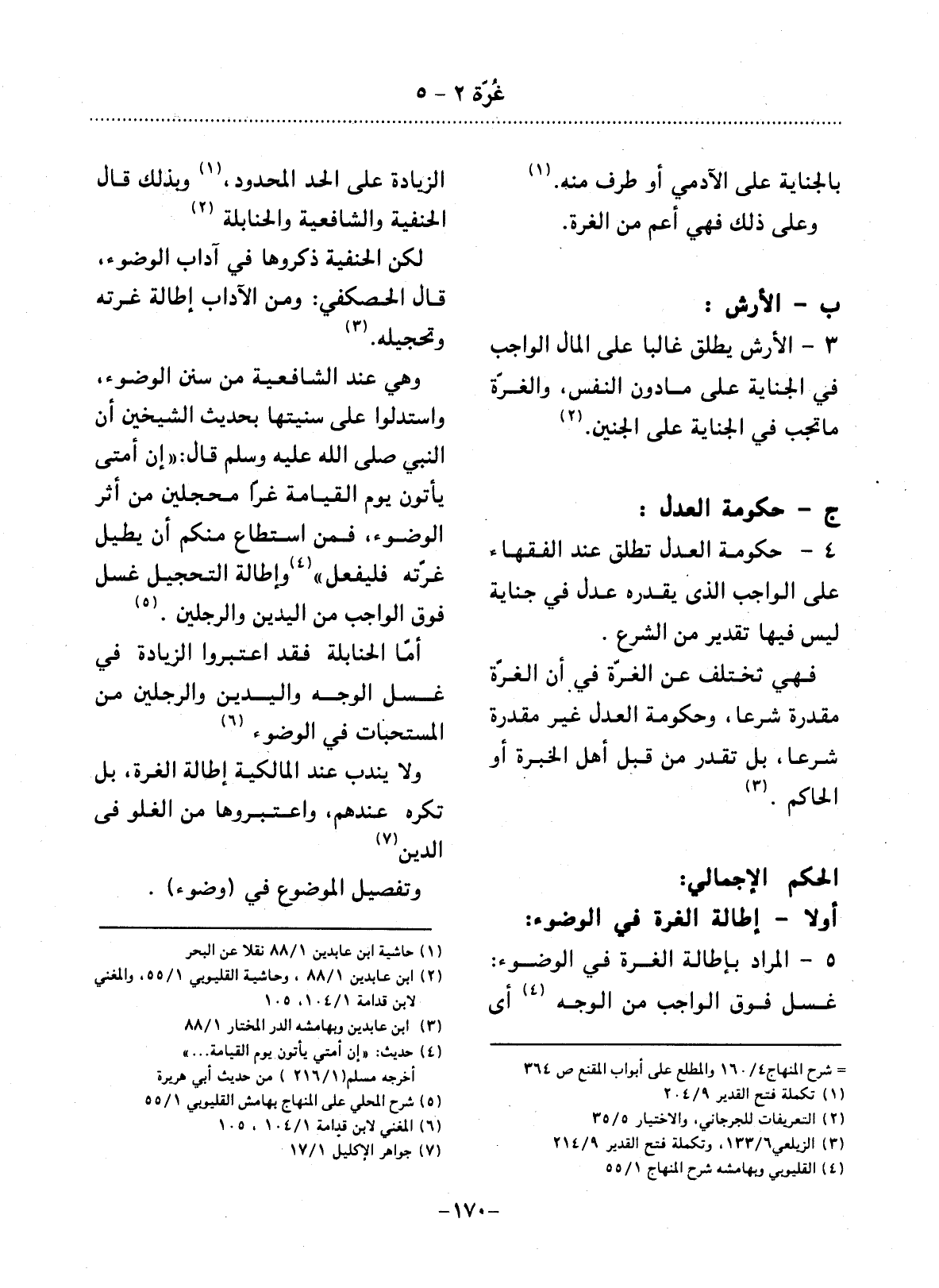 5 - الْمُرَادُ بِإِطَالَةِ الْغُرَّةِ فِي الْوُضُوءِ: غَسْل فَوْقَ الْوَاجِبِ مِنَ الْوَجْهِ (4) أَيْ