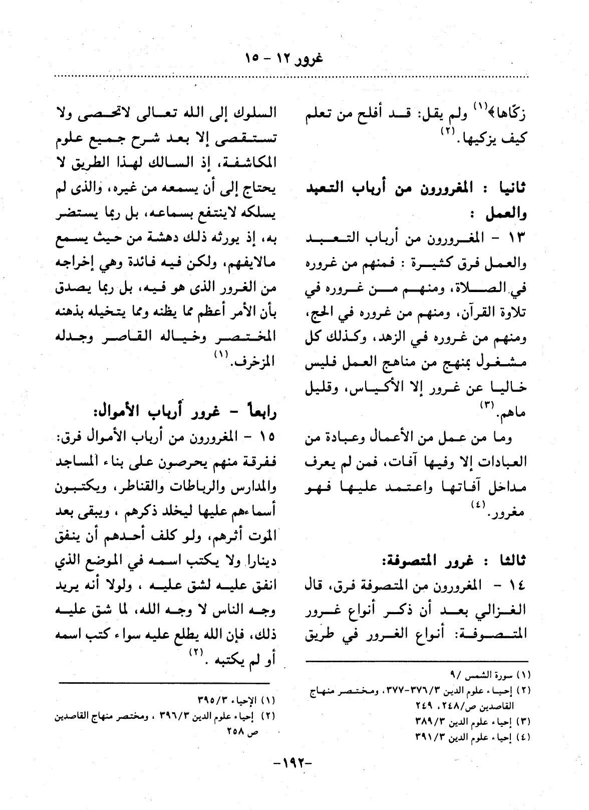 (2) إحياء علوم الدين 3 / 396، ومختصر منهاج القاصدين ص258.