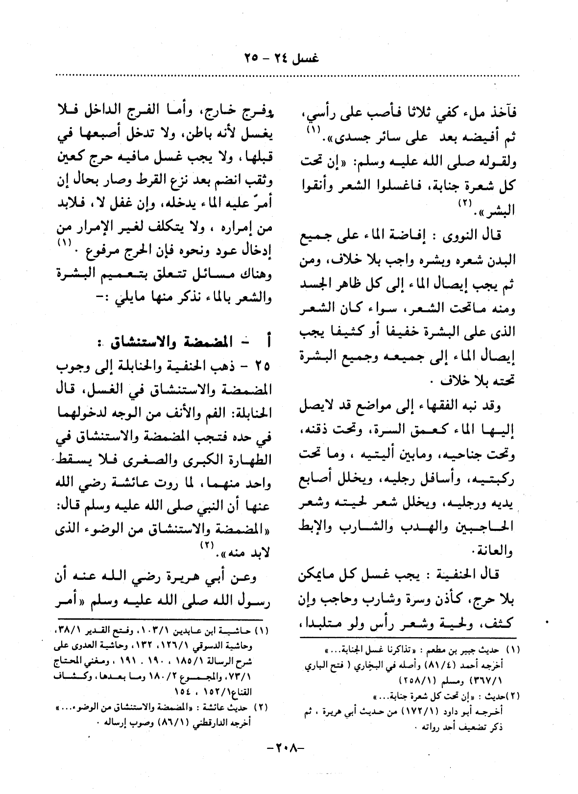 (2) حديث: " إن تحت كل شعرة جنابة. . . ". أخرجه أبو داود (1 / 172) من حديث أبي هريرة، ثم ذكر تضعيف أحد رواته.