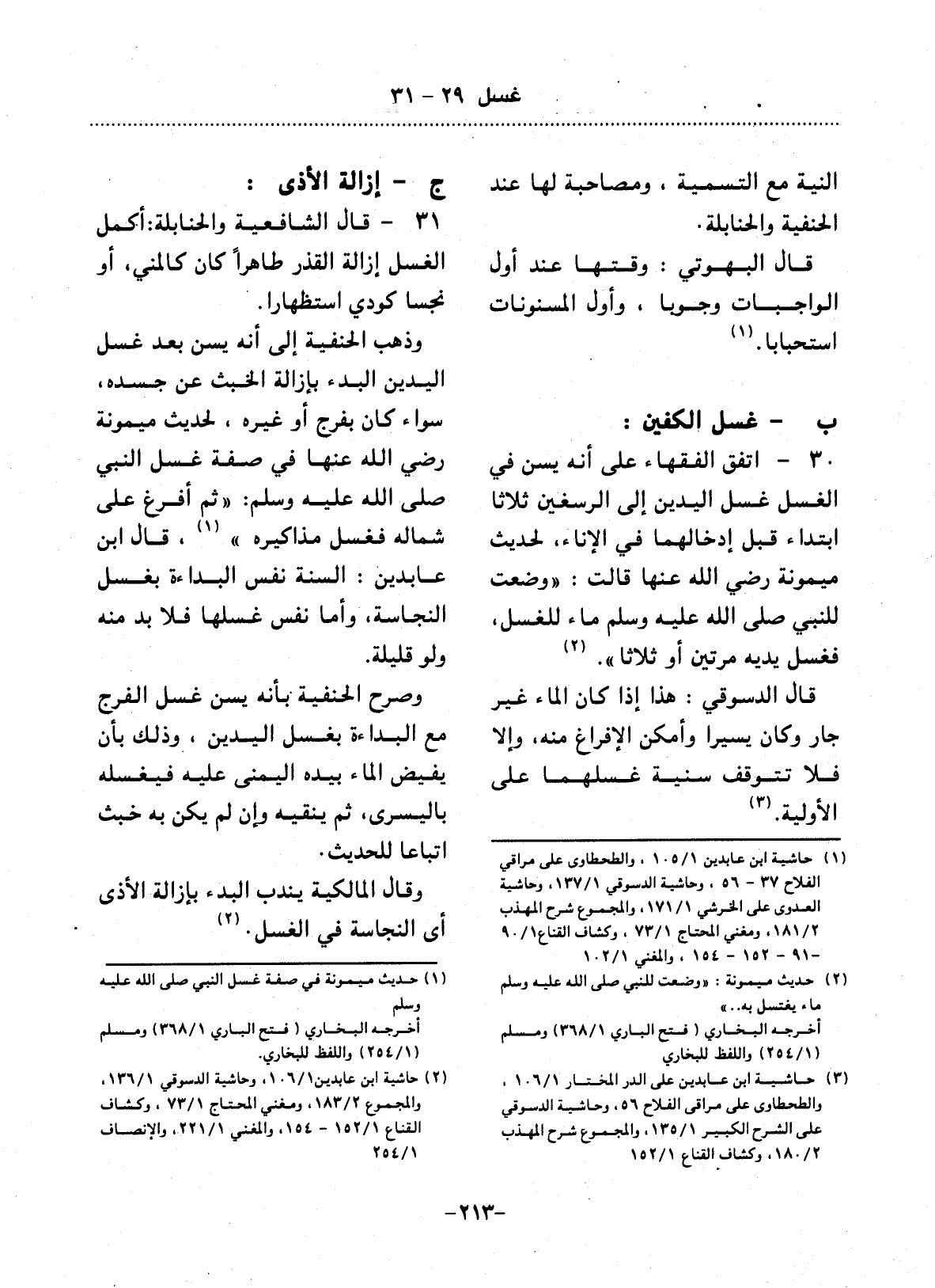 (3) حاشية ابن عابدين على الدر المختار 1 / 106، والطحطاوي على مراقي الفلاح 56، وحاشية الدسوقي على الشرح الكبير 1 / 135، والمجموع شرح المهذب 2 / 180، وكشاف القناع 1 / 152.