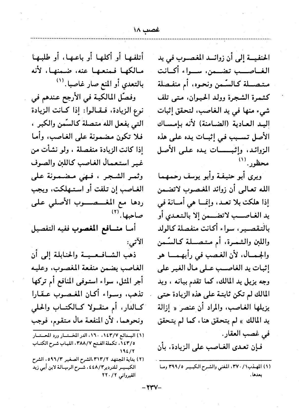 (1) البدائع 7 / 143، 160، الدر المختار ورد المحتار 5 / 143، تكملة الفتح 7 / 388، اللباب شرح الكتاب 2 / 194.