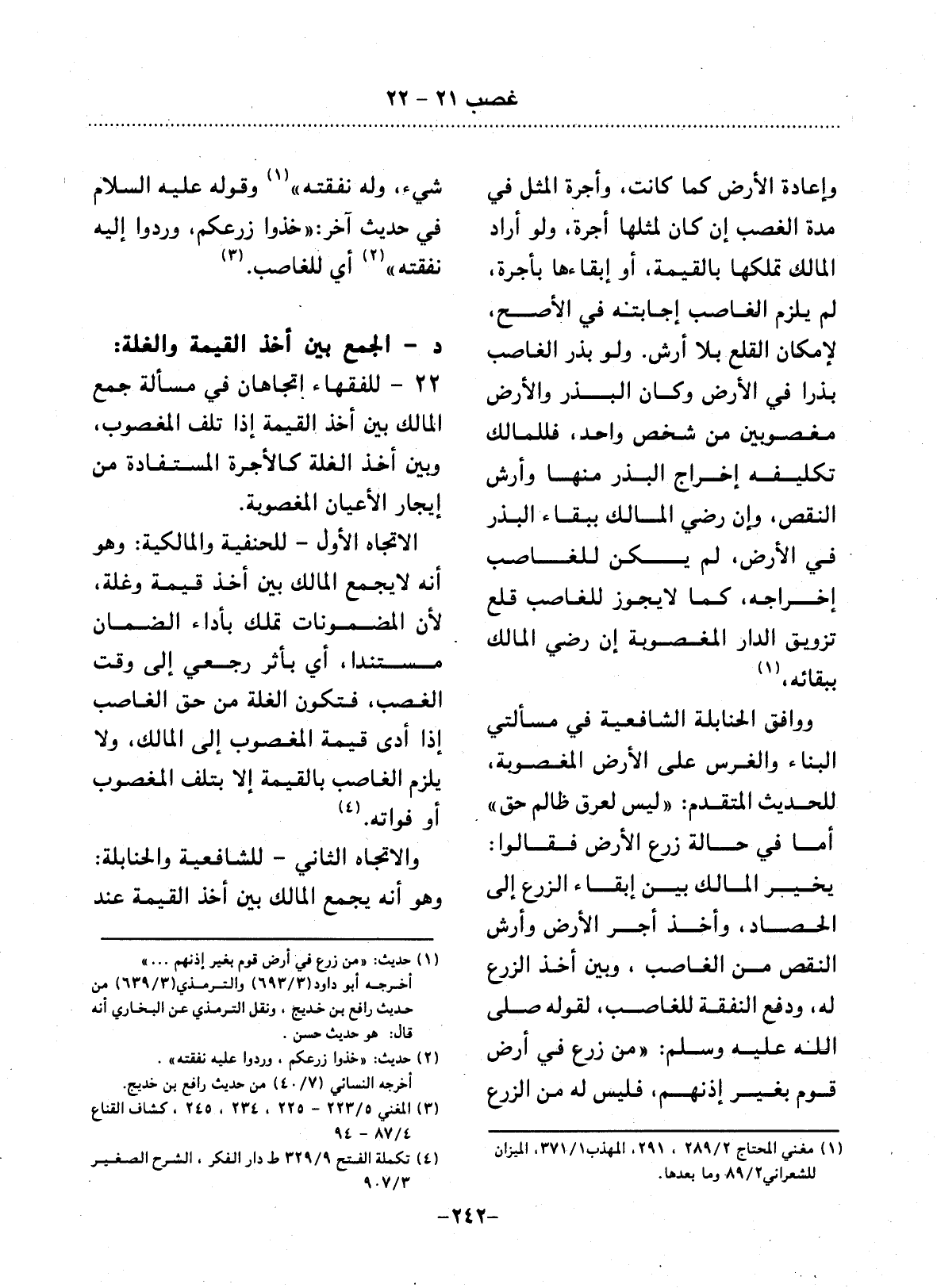 (1) حديث: " من زرع في أرض قوم بغير إذنهم. . . ". أخرجه أبو داود (3 / 693) والترمذي (3 / 639) من حديث رافع بن خديج، ونقل الترمذي عن البخاري أنه قال: هو حديث حسن.