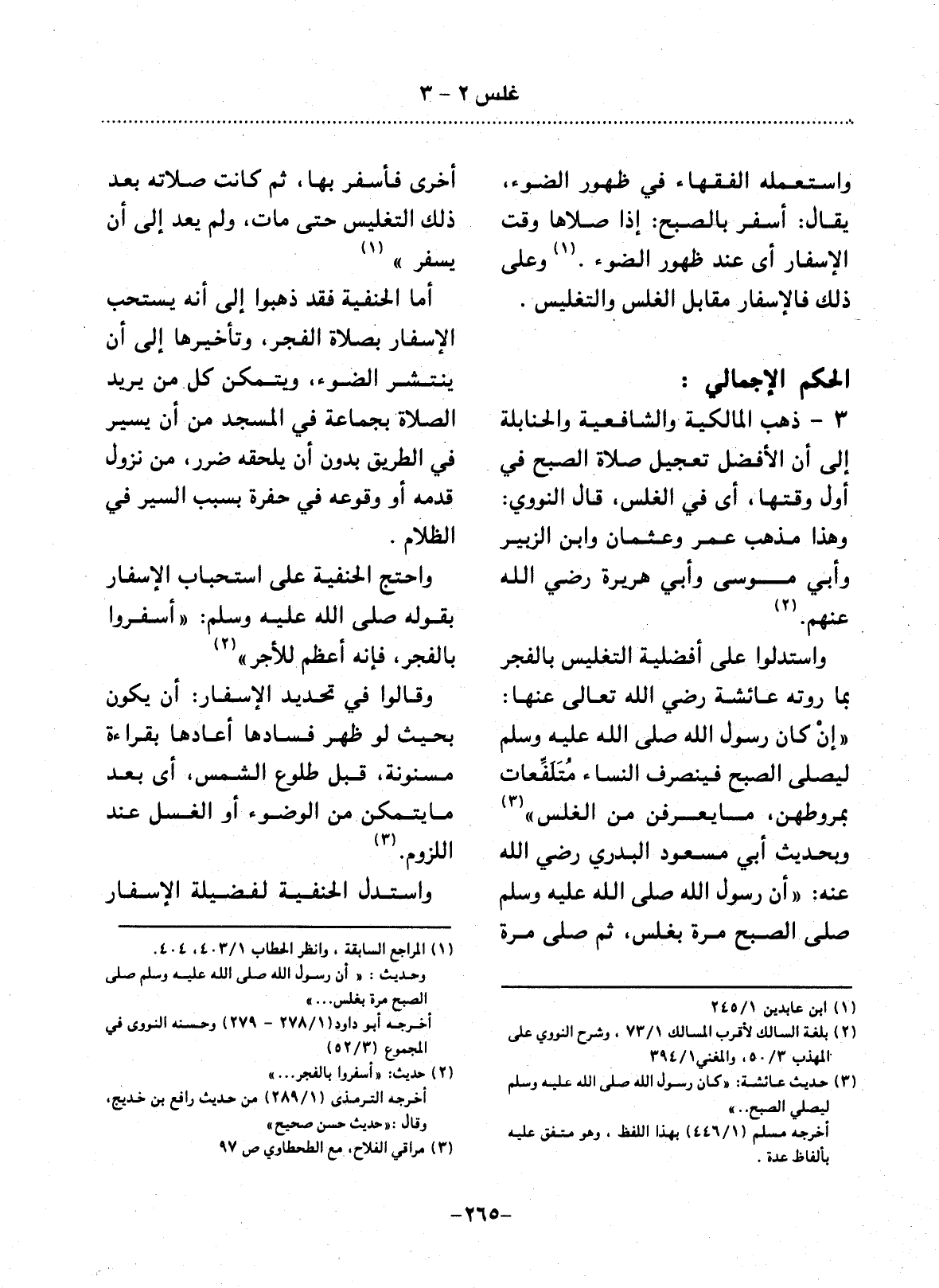 (1) المراجع السابقة، وانظر الحطاب 1 / 403، 404. وحديث: " أن رسول الله - صلى الله عليه وسلم - صلى الصبح مرة بغلس. . . ". أخرجه أبو داود (1 / 278 - 279) وحسنه النووي في المجموع (3 / 52) .