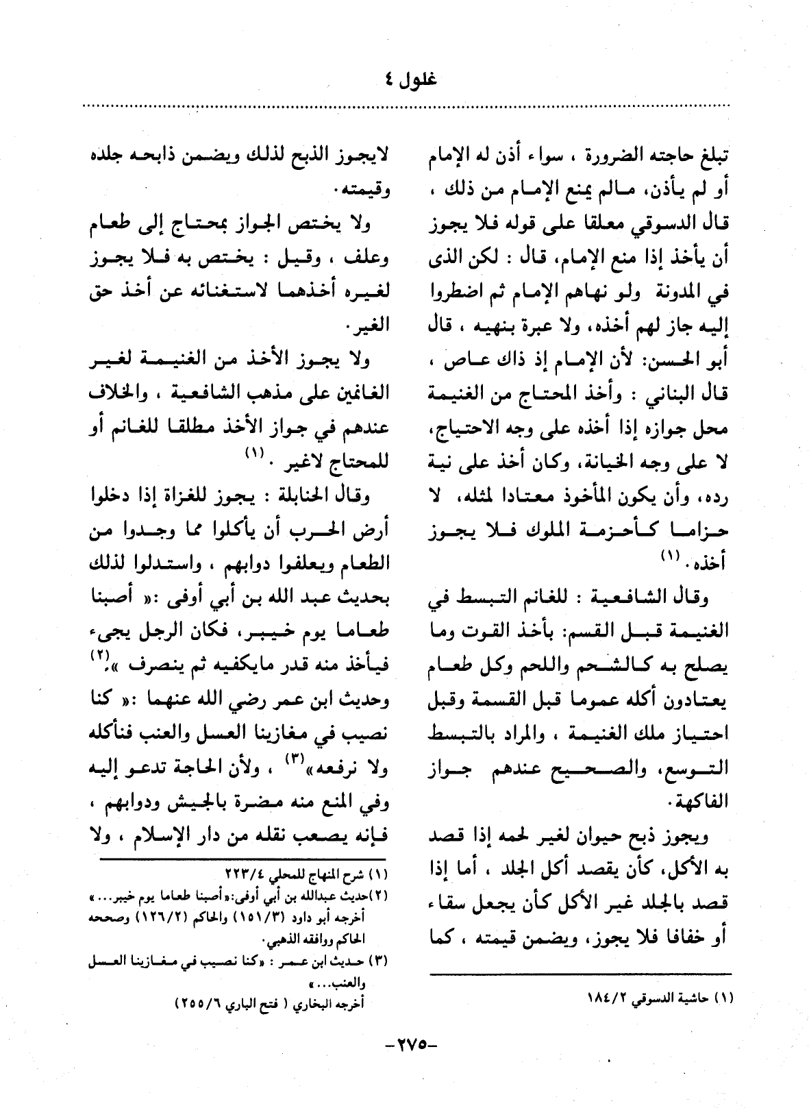 (3) حديث ابن عمر: " كنا نصيب في مغازينا العسل والعنب. . . ". أخرجه البخاري (فتح الباري 6 / 255) .