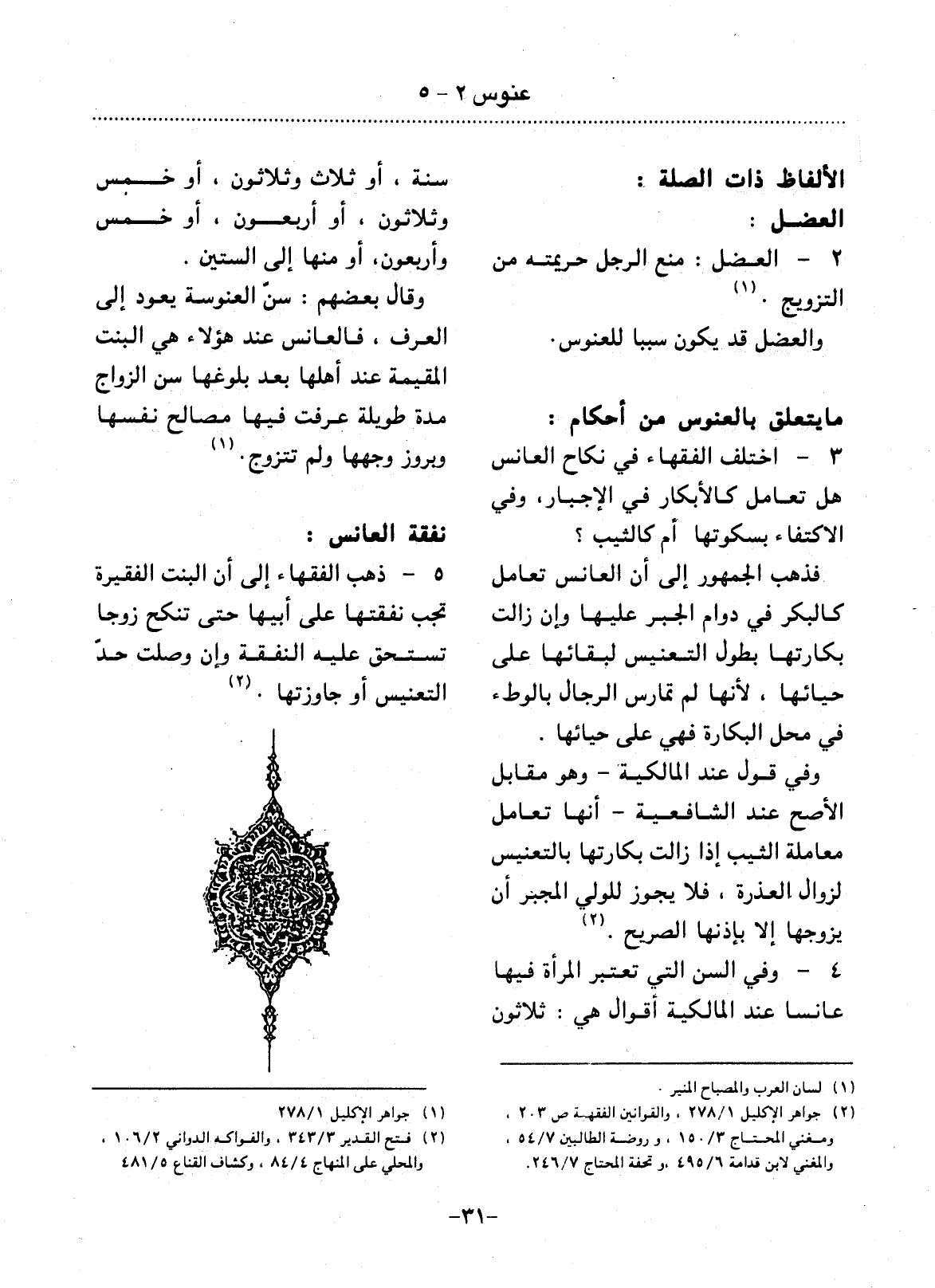 مَا يَتَعَلَّقُ بِالْعُنُوسِ مِنْ أَحْكَامٍ: