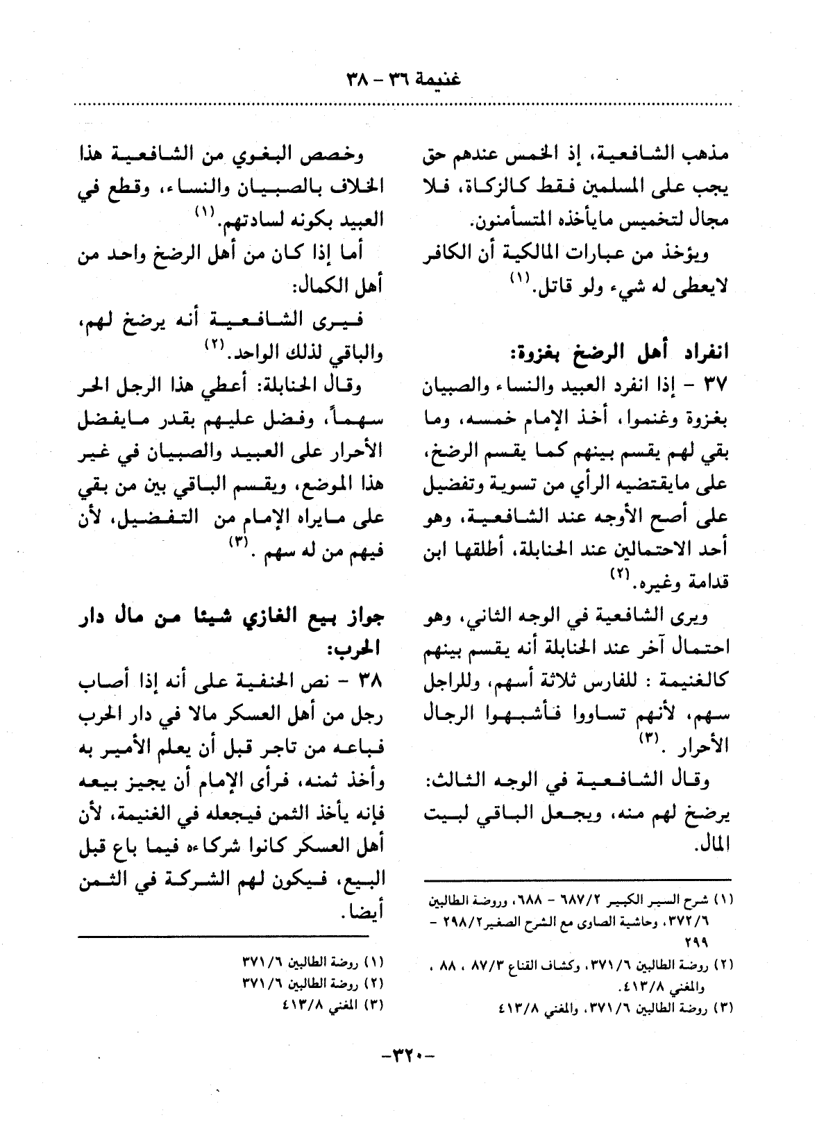 (1) شرح السير الكبير 2 / 687 - 688، وروضة الطالبين 6 / 372، وحاشية الصاوي مع الشرح الصغير 2 / 298 - 299.
