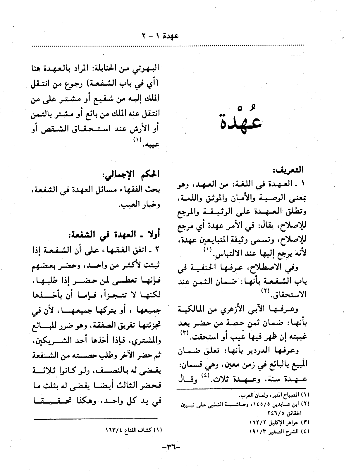أَوَّلاً - الْعُهْدَةُ فِي الشُّفْعَةِ: