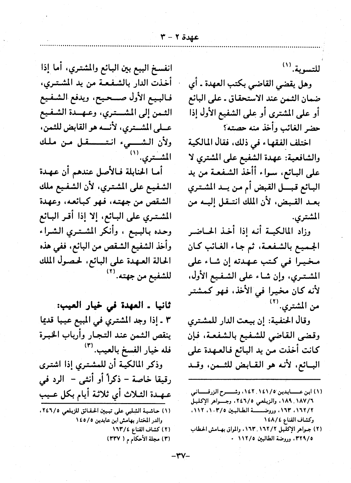 (2) جواهر الإكليل 2 / 162، 163، والمواق بهامش الحطاب 5 / 329، وروضة الطالبين 5 / 112.