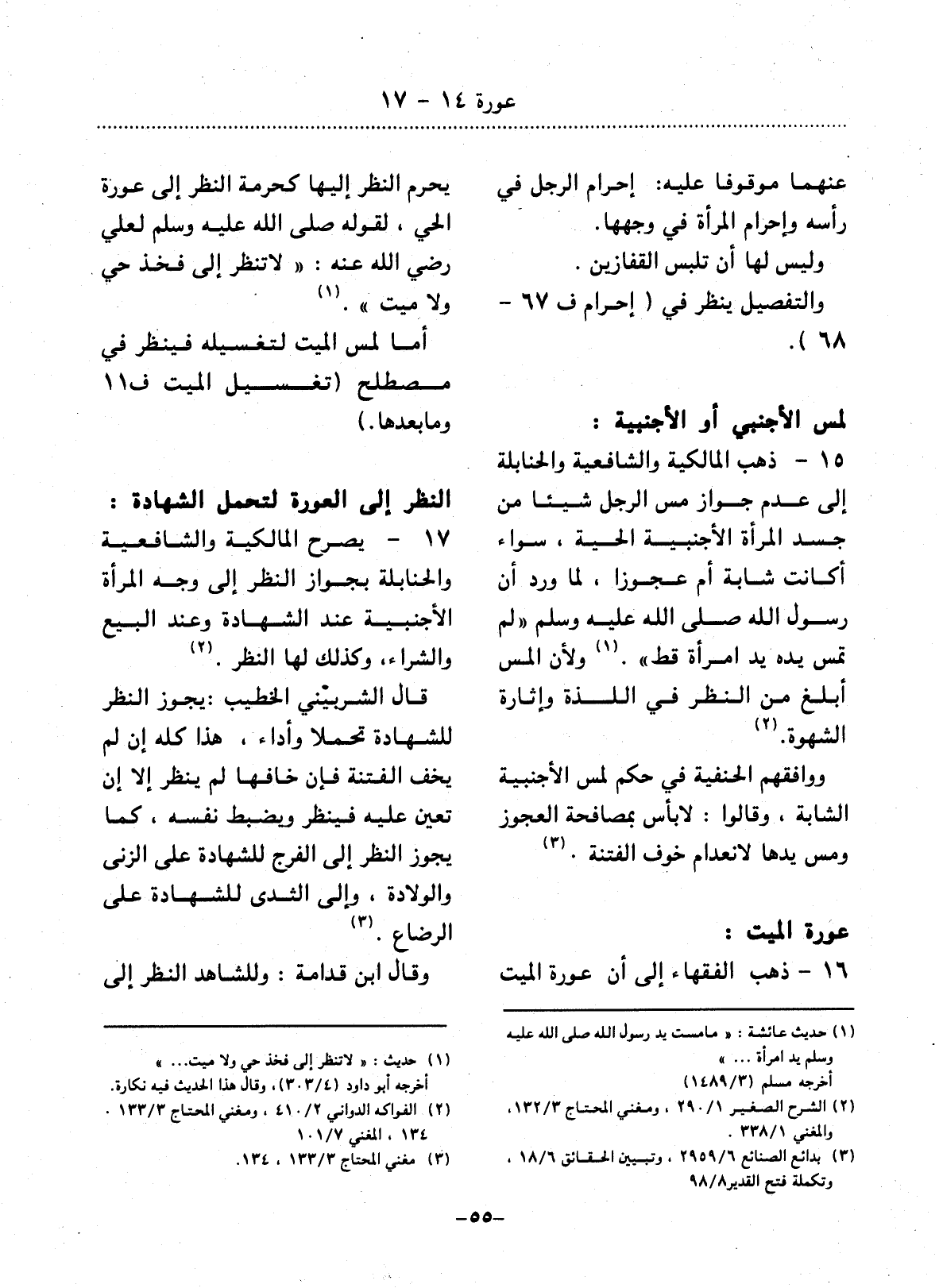 16 - ذَهَبَ الْفُقَهَاءُ إِلَى أَنَّ عَوْرَةَ الْمَيِّتِ