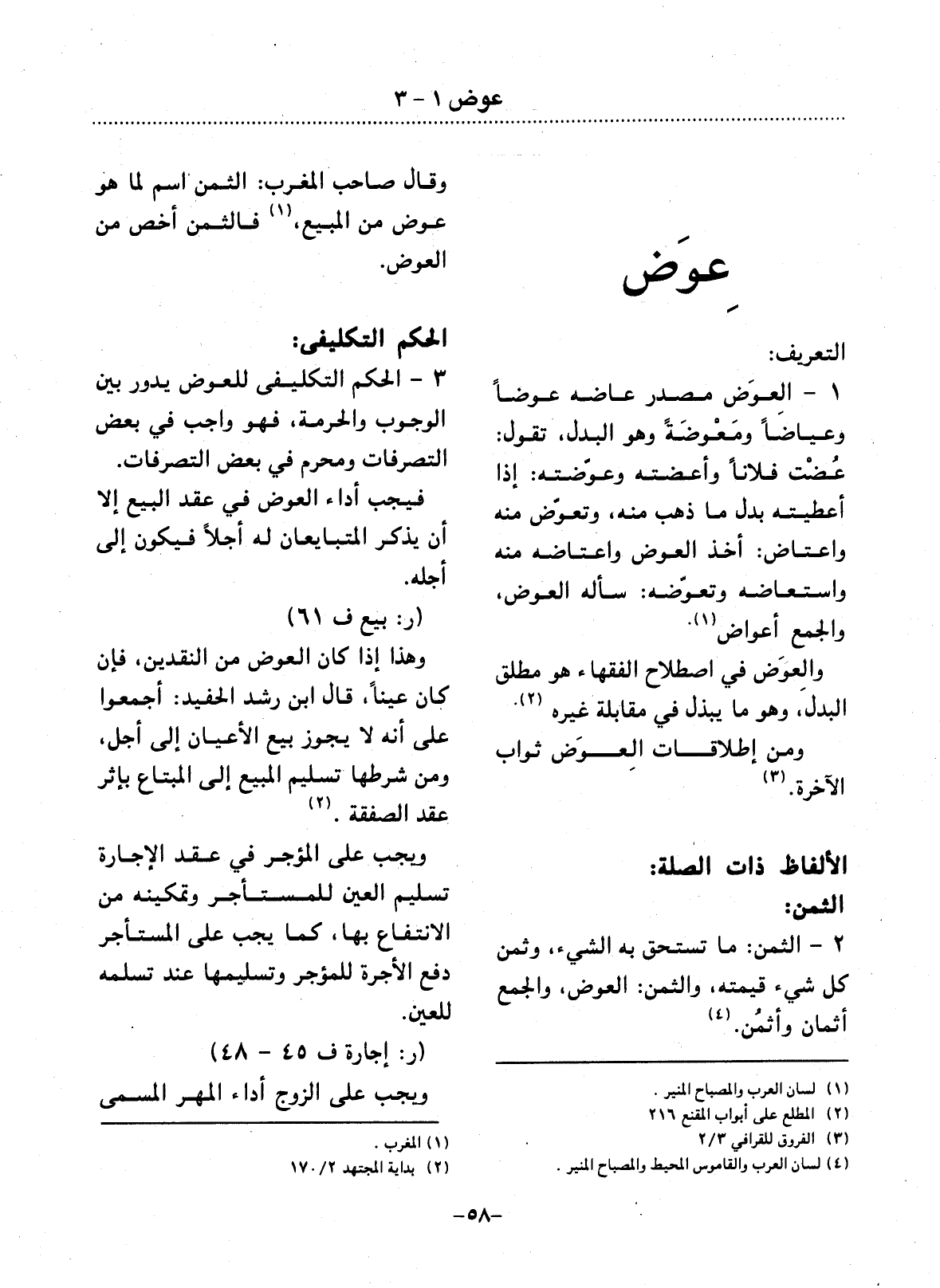 3 - الْحُكْمُ التَّكْلِيفِيُّ لِلْعِوَضِ يَدُورُ بَيْنَ الْوُجُوبِ وَالْحُرْمَةِ، فَهُوَ وَاجِبٌ فِي بَعْضِ التَّصَرُّفَاتِ وَمُحَرَّمٌ فِي بَعْضِ التَّصَرُّفَاتِ.