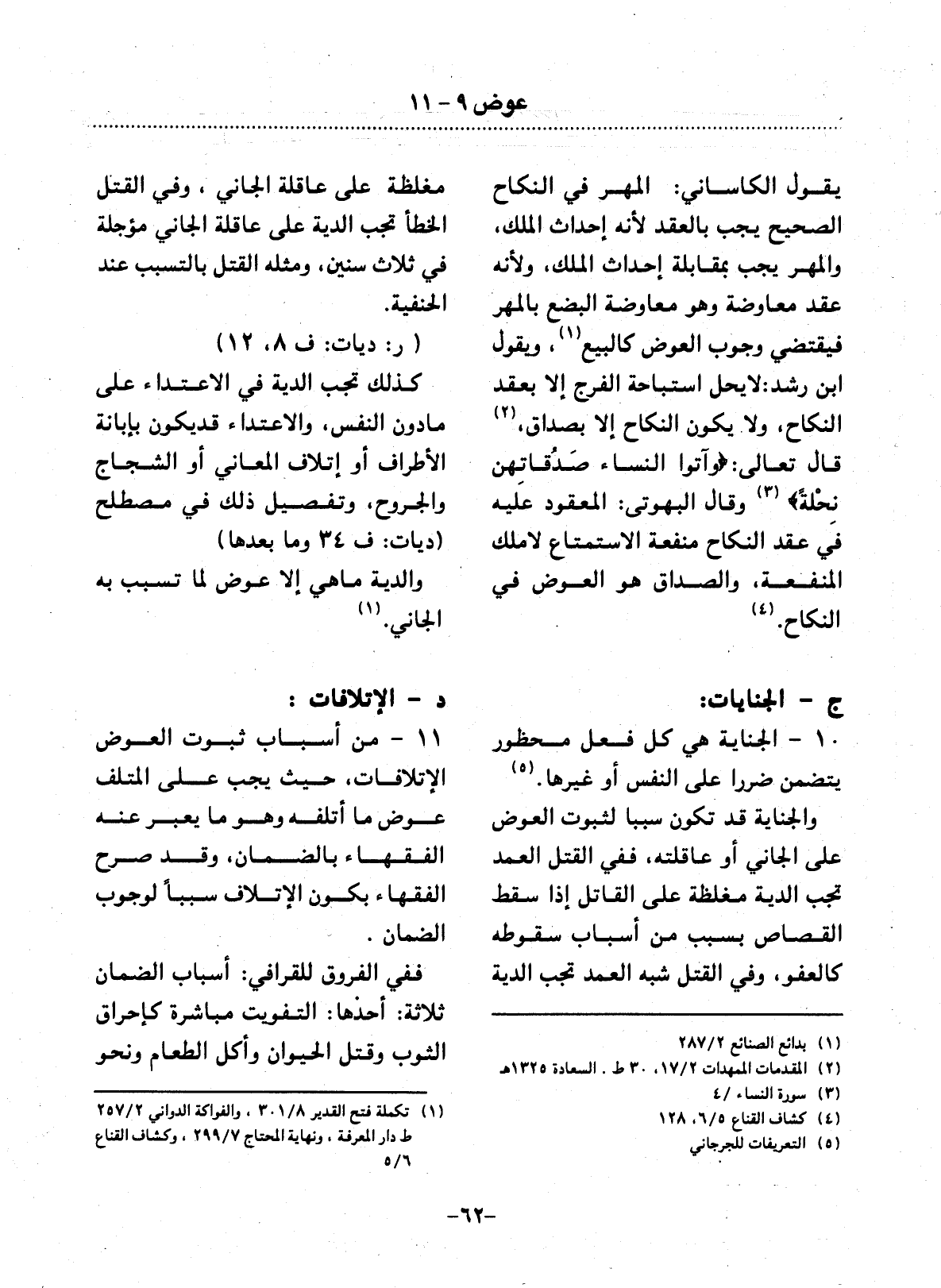 10 - الْجِنَايَةُ هِيَ كُل فِعْلٍ مَحْظُورٍ يَتَضَمَّنُ ضَرَرًا عَلَى النَّفْسِ أَوْ غَيْرِهَا (5) .