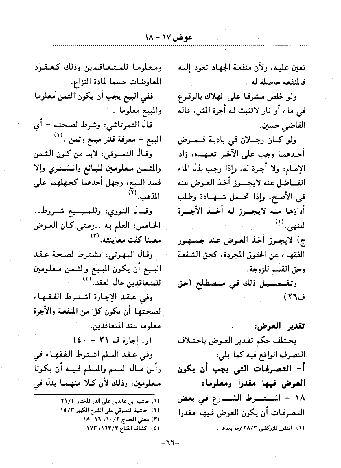 18 - اشْتَرَطَ الشَّارِعُ فِي بَعْضِ التَّصَرُّفَاتِ أَنْ يَكُونَ الْعِوَضُ فِيهَا مُقَدَّرًا