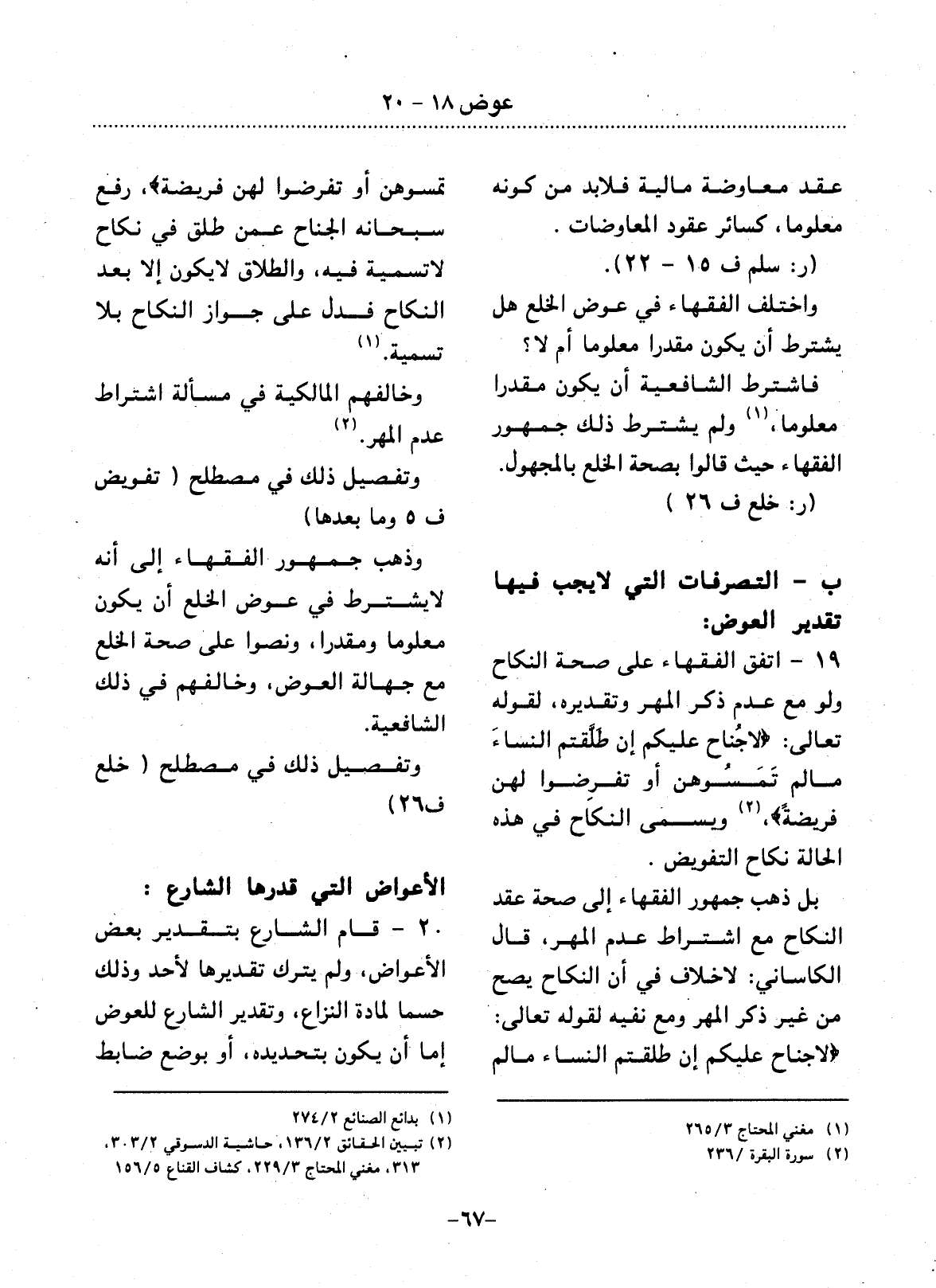 20 - قَامَ الشَّارِعُ بِتَقْدِيرِ بَعْضِ الأَْعْوَاضِ، وَلَمْ يَتْرُكْ تَقْدِيرَهَا لأَِحَدٍ وَذَلِكَ حَسْمًا لِمَادَّةِ النِّزَاعِ، وَتَقْدِيرُ الشَّارِعِ لِلْعِوَضِ إِمَّا أَنْ يَكُونَ بِتَحْدِيدِهِ، أَوْ بِوَضْعِ ضَابِطٍ