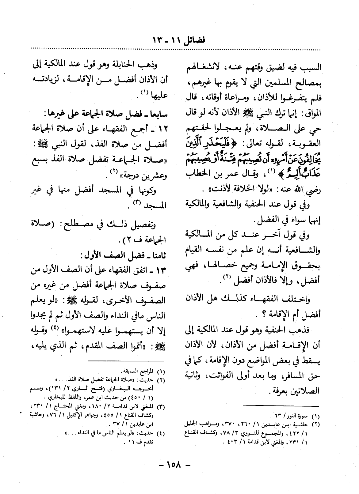 12 - أَجْمَعَ الْفُقَهَاءُ عَلَى أَنَّ صَلاَةَ الْجَمَاعَةِ أَفْضَل مِنْ صَلاَةِ الْفَذِّ، لِقَوْل النَّبِيِّ صَلَّى اللَّهُ عَلَيْهِ وَسَلَّمَ: صَلاَةُ الْجَمَاعَةِ تَفْضُل صَلاَةَ الْفَذِّ بِسَبْعٍ وَعِشْرِينَ دَرَجَةً (2) .