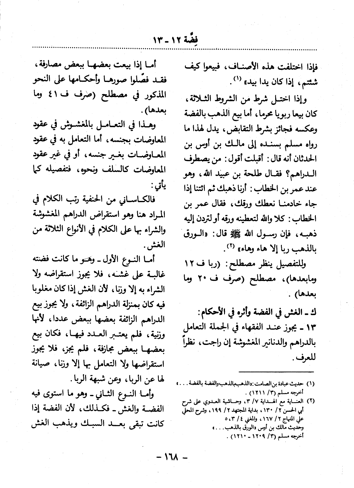(2) العناية مع الهداية 7 / 3، وحاشية العدوي على شرح أبي الحسن 2 / 130، بداية المجتهد 2 / 199، وشرح المحلي على المنهاج 2 / 167، والمغني 4 / 503. وحديث مالك بن أوس " الورق بالذهب. . . " أخرجه مسلم (3 / 1209 - 1210) .