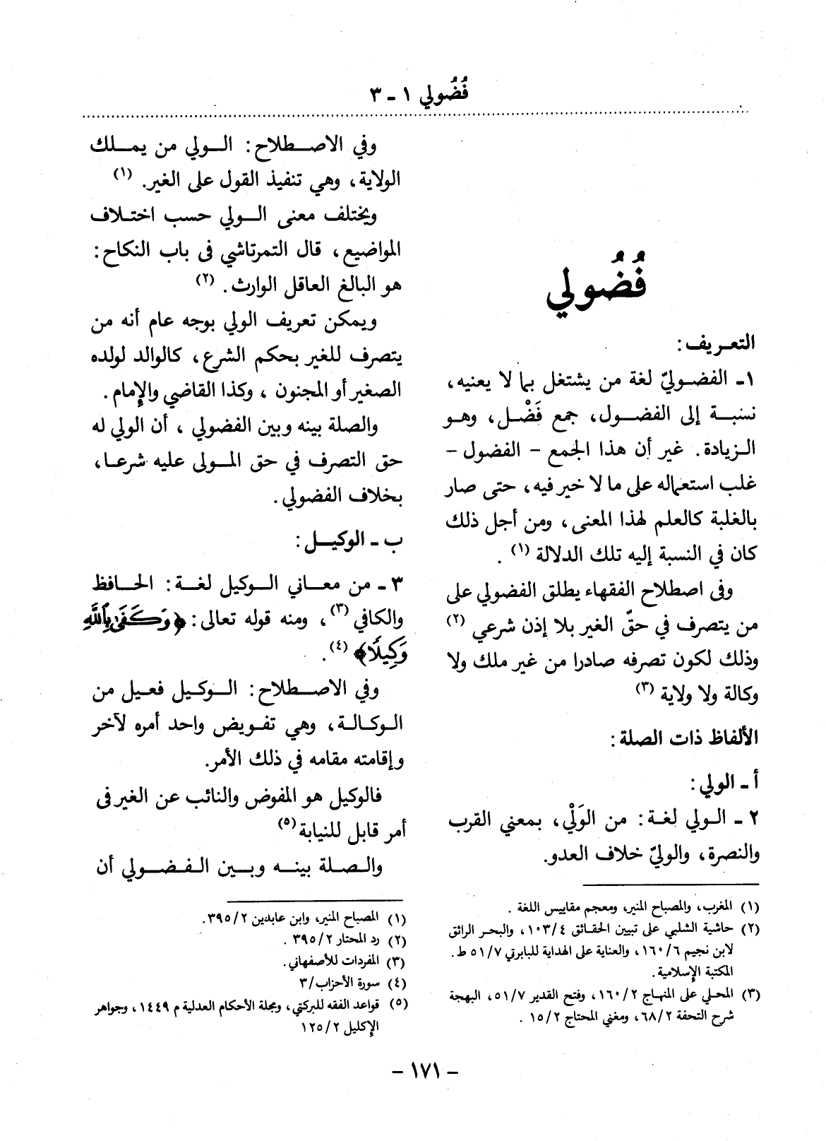 (1) المصباح المنير، وابن عابدين 2 / 395.