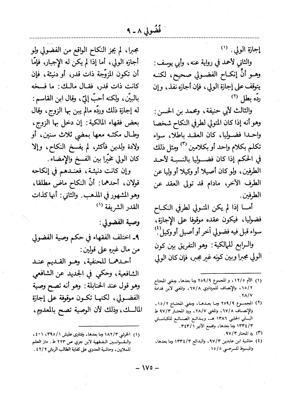 9 - اخْتَلَفَ الْفُقَهَاءُ فِي حُكْمِ وَصِيَّةِ الْفُضُولِيِّ مِنْ مَال غَيْرِهِ عَلَى قَوْلَيْنِ: