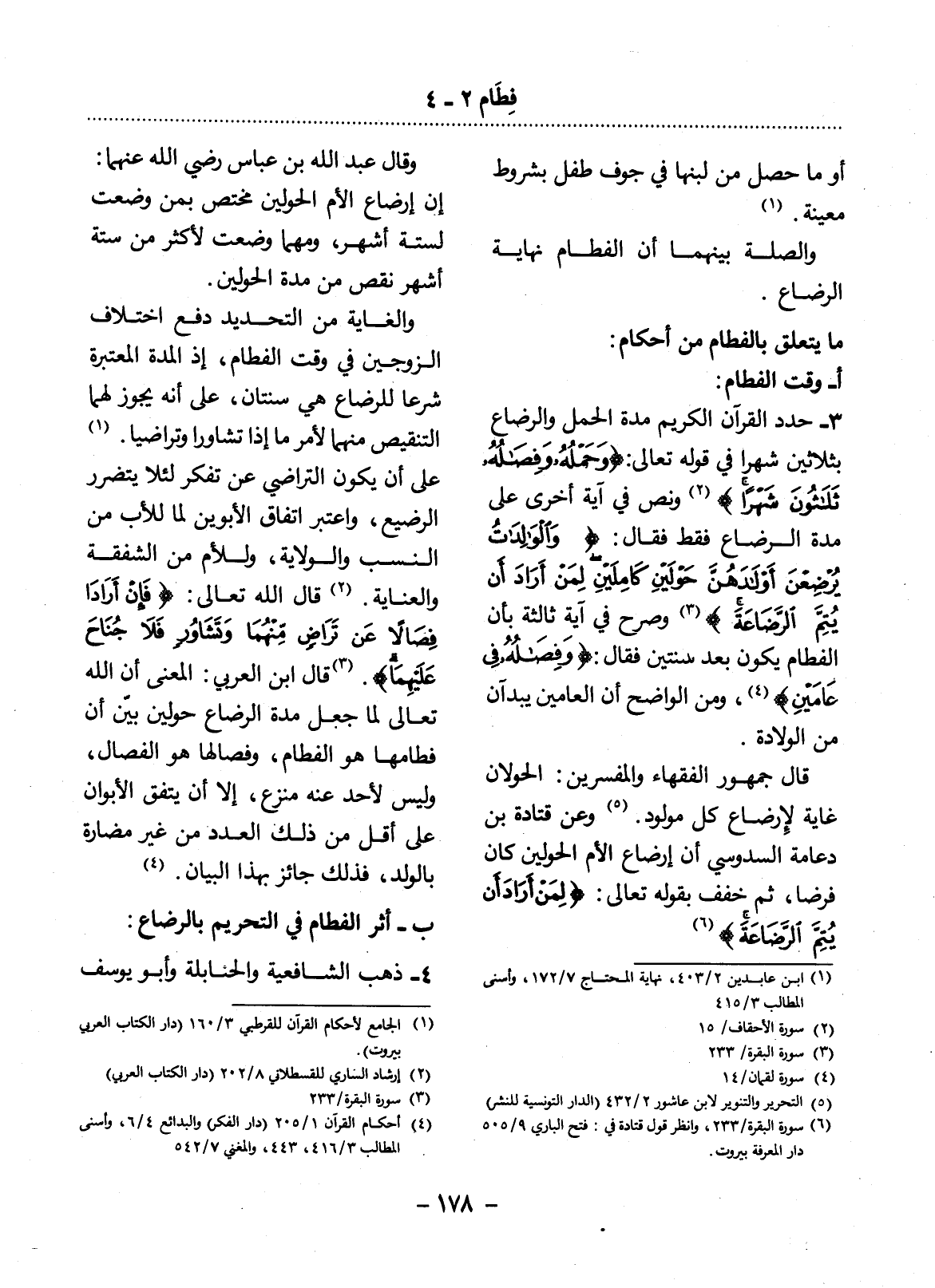 (6) سورة البقرة / 233، وانظر قول قتادة في: فتح الباري 9 / 505 دار المعرفة بيروت.