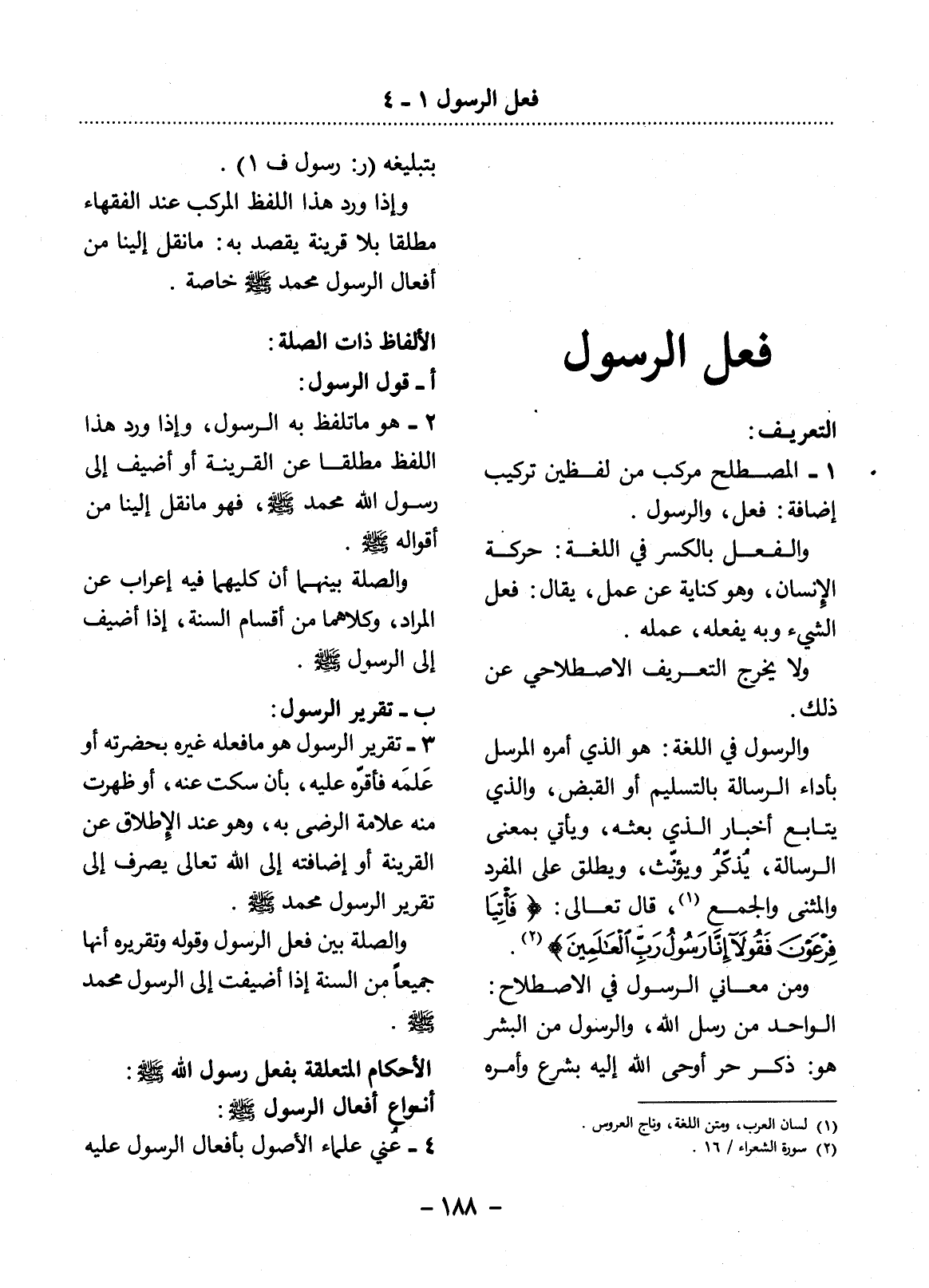 1 - الْمُصْطَلَحُ مُرَكَّبٌ مِنْ لَفْظَيْنِ تَرْكِيبَ إِضَافَةٍ: فِعْلٌ، وَالرَّسُول.